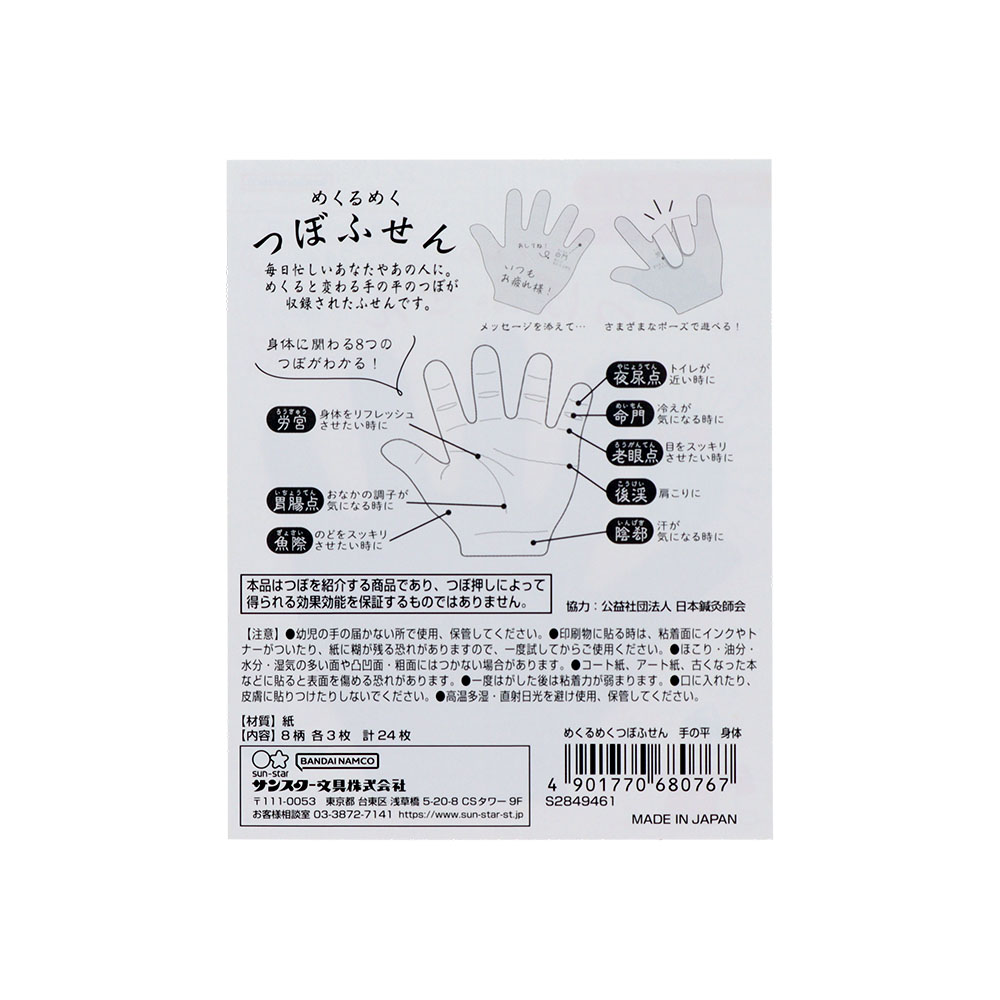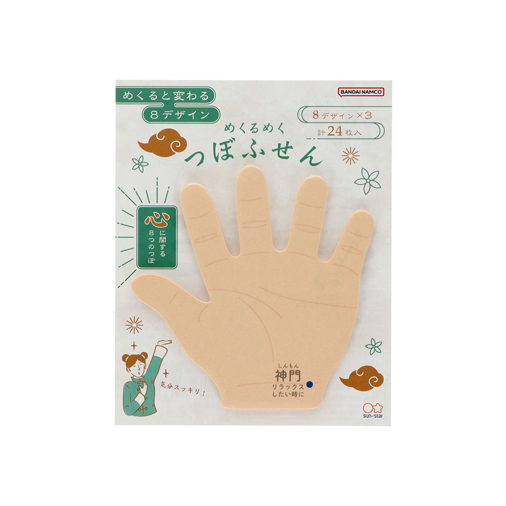 手の平にある、身体に効くツボを収録した「めくるめくつぼふせん」
