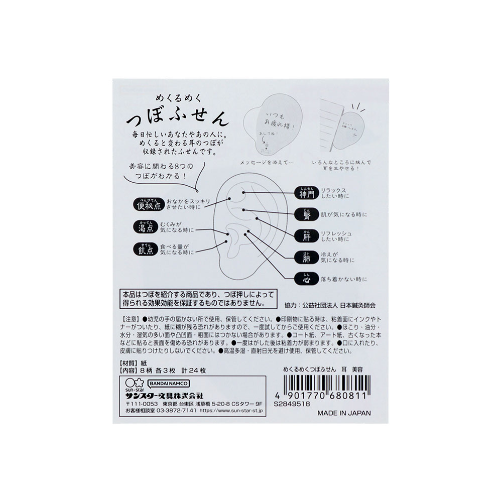 大きな耳の形が面白い、身体に効くつぼを8つ収録した「めくるめくつぼふせん」
