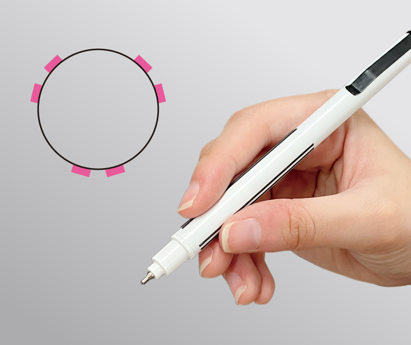 指先が自然と正しい位置に収まるように設計されており、ユーザーが無意識に正しい三点持ちを実現できるようにサポートします。