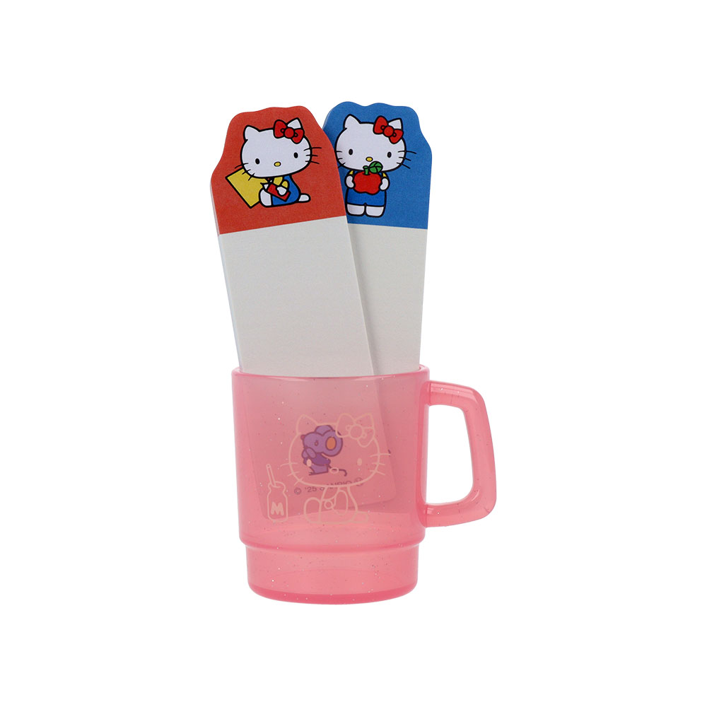 カップと付箋にピンク色を使用した「ハローキティ」デザインのカップケース入り付箋。