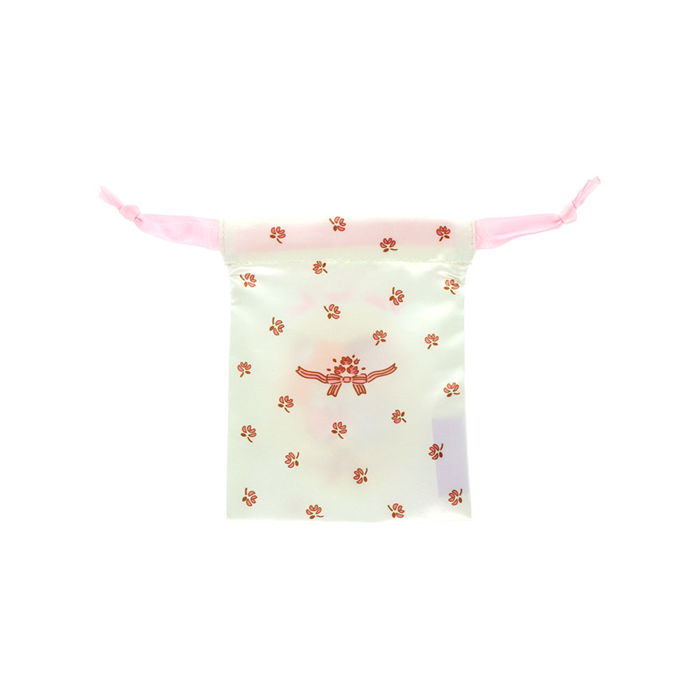 レースをあしらった背景がおしゃれなミニ巾着には、