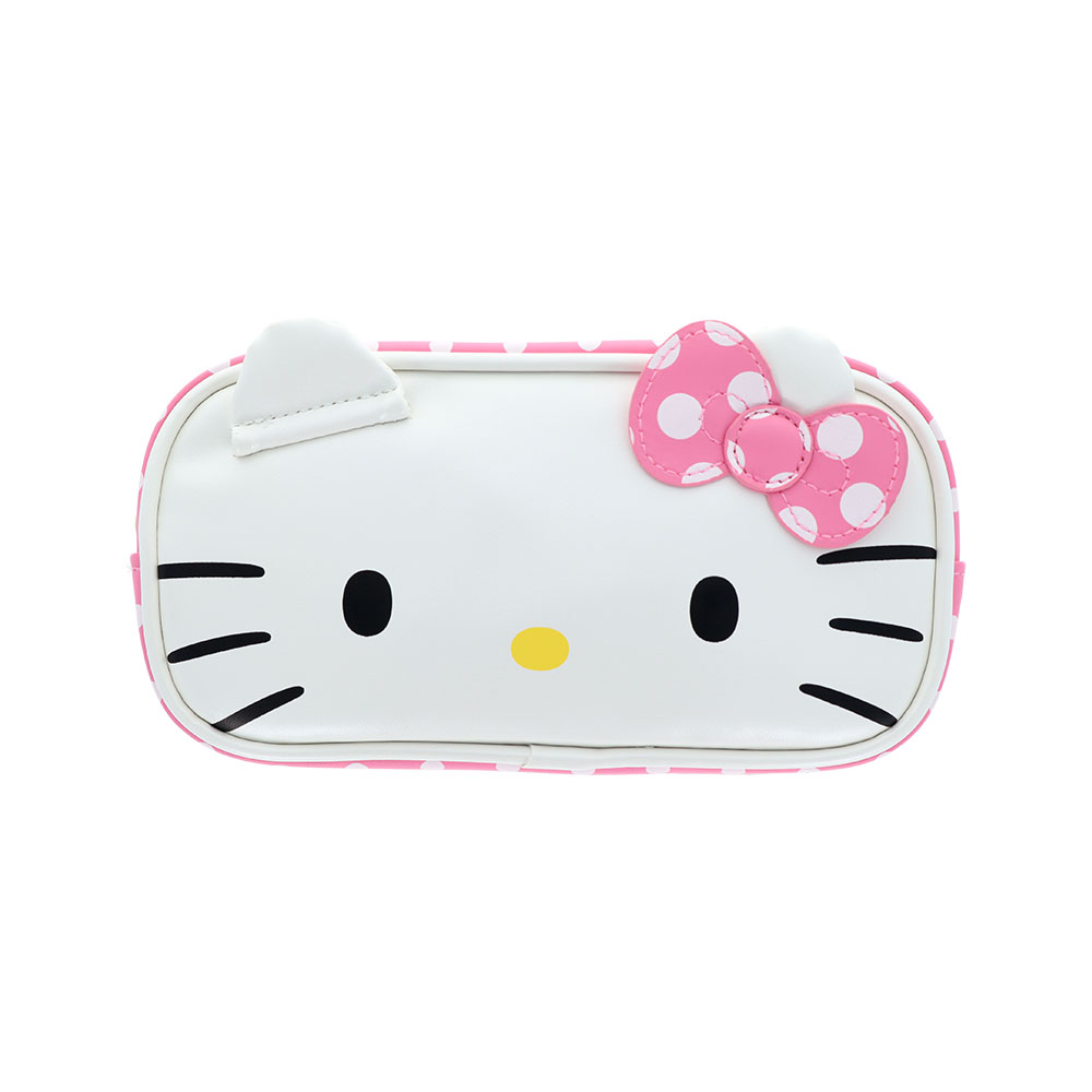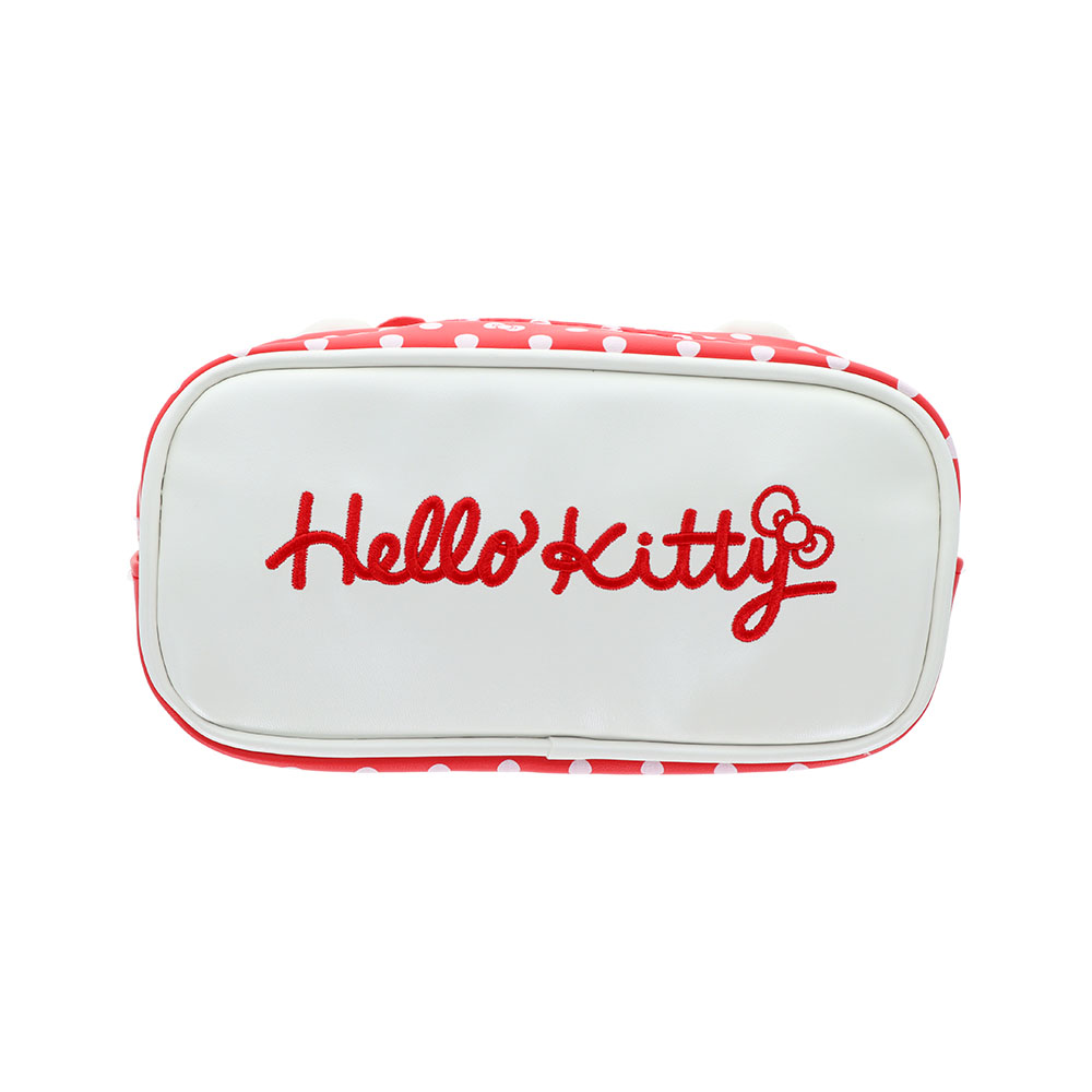 リンゴを手にお座りする「ハローキティ」を刺繍したキルティングポーチ。