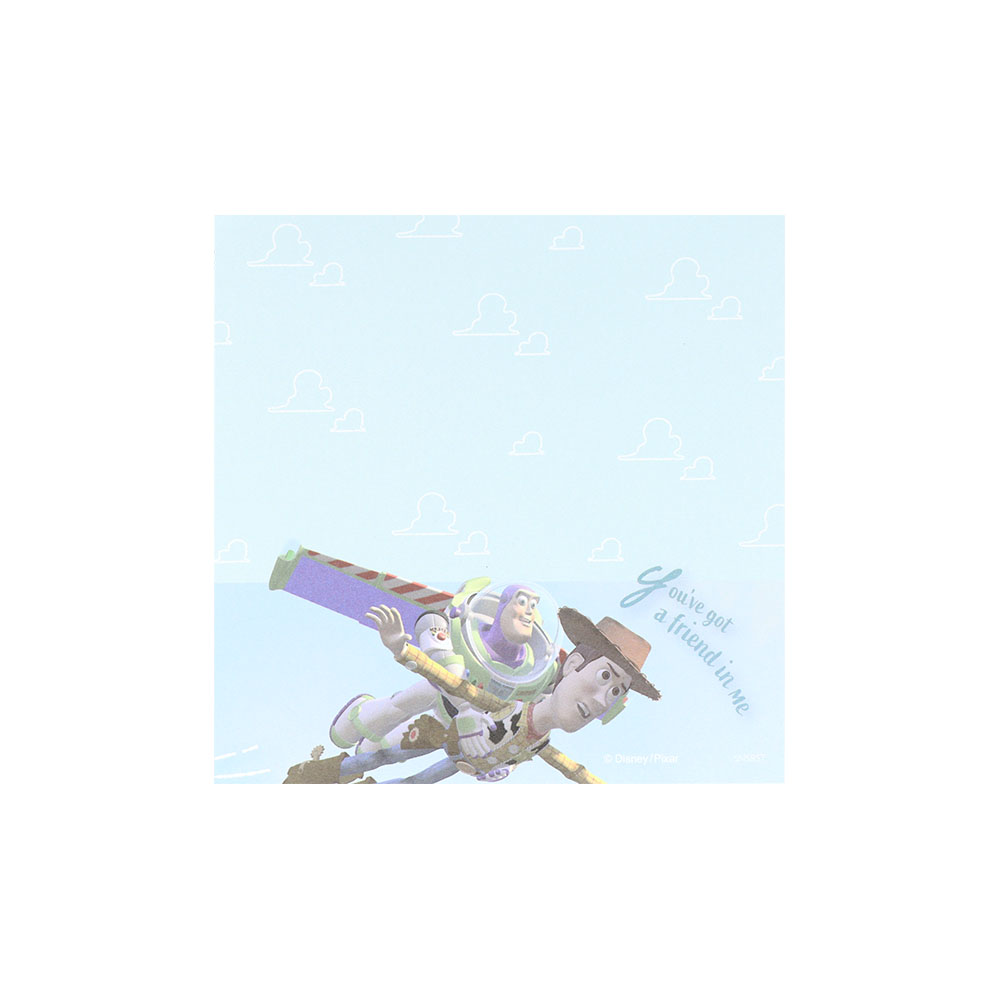 空を飛ぶ「ウッディ」と「バズ・ライトイヤー」を切り取ったメモや