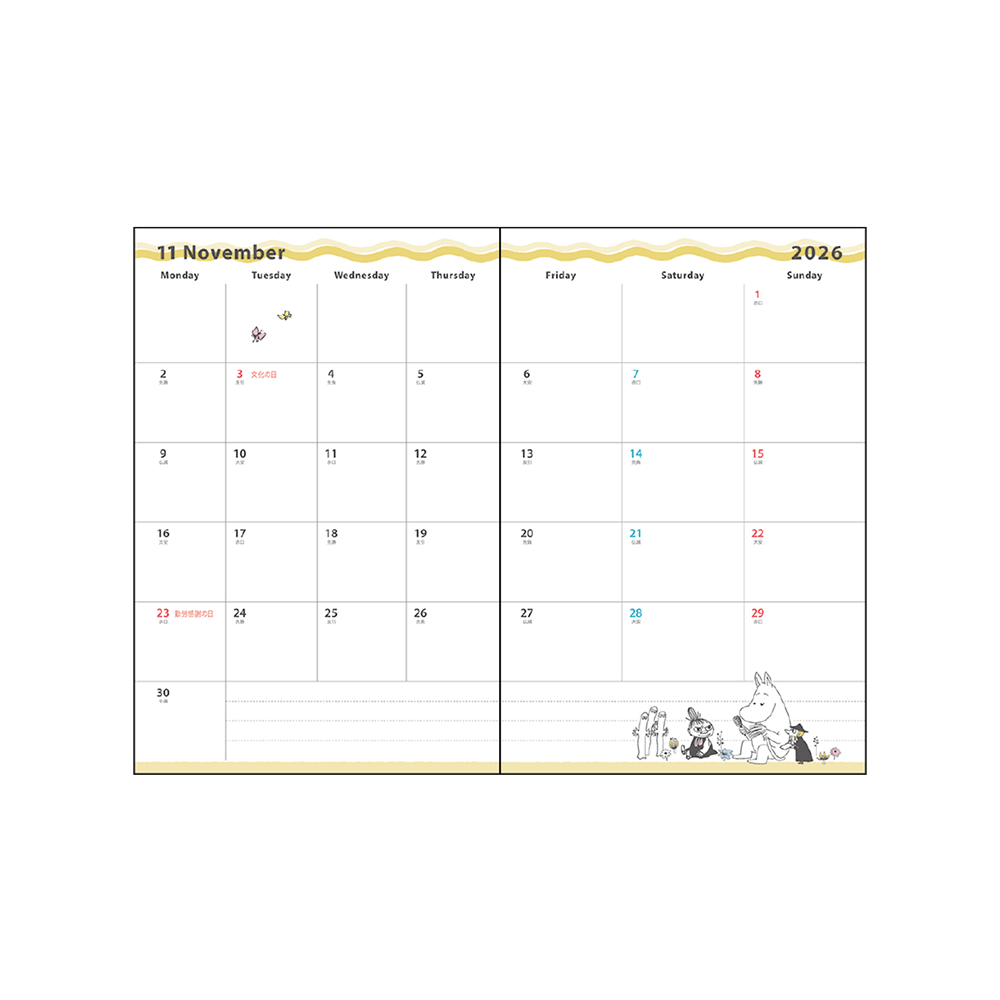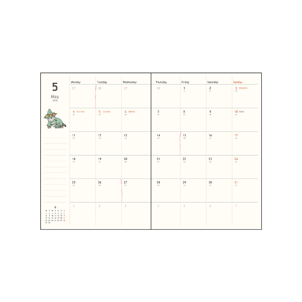 週間ページに右側は、「ムーミン」たちの世界観が詰まったデザインとなっています☆