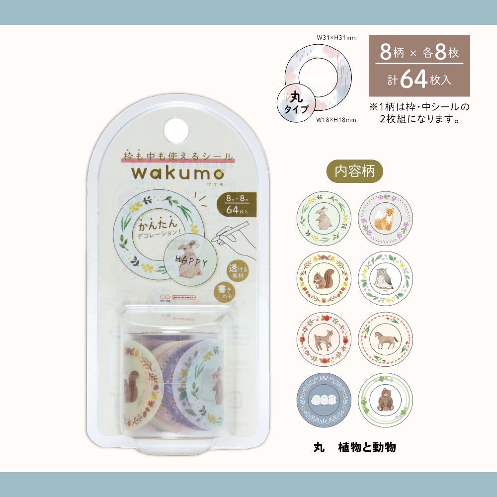 1柄が「外枠」と「内側」の2枚に分かれた仕様のロールシール「ワクモ」がサンスター文具から登場。