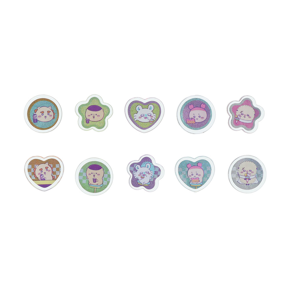 「ちいかわ」たちやモチーフをデザインしたおはじき風シール。