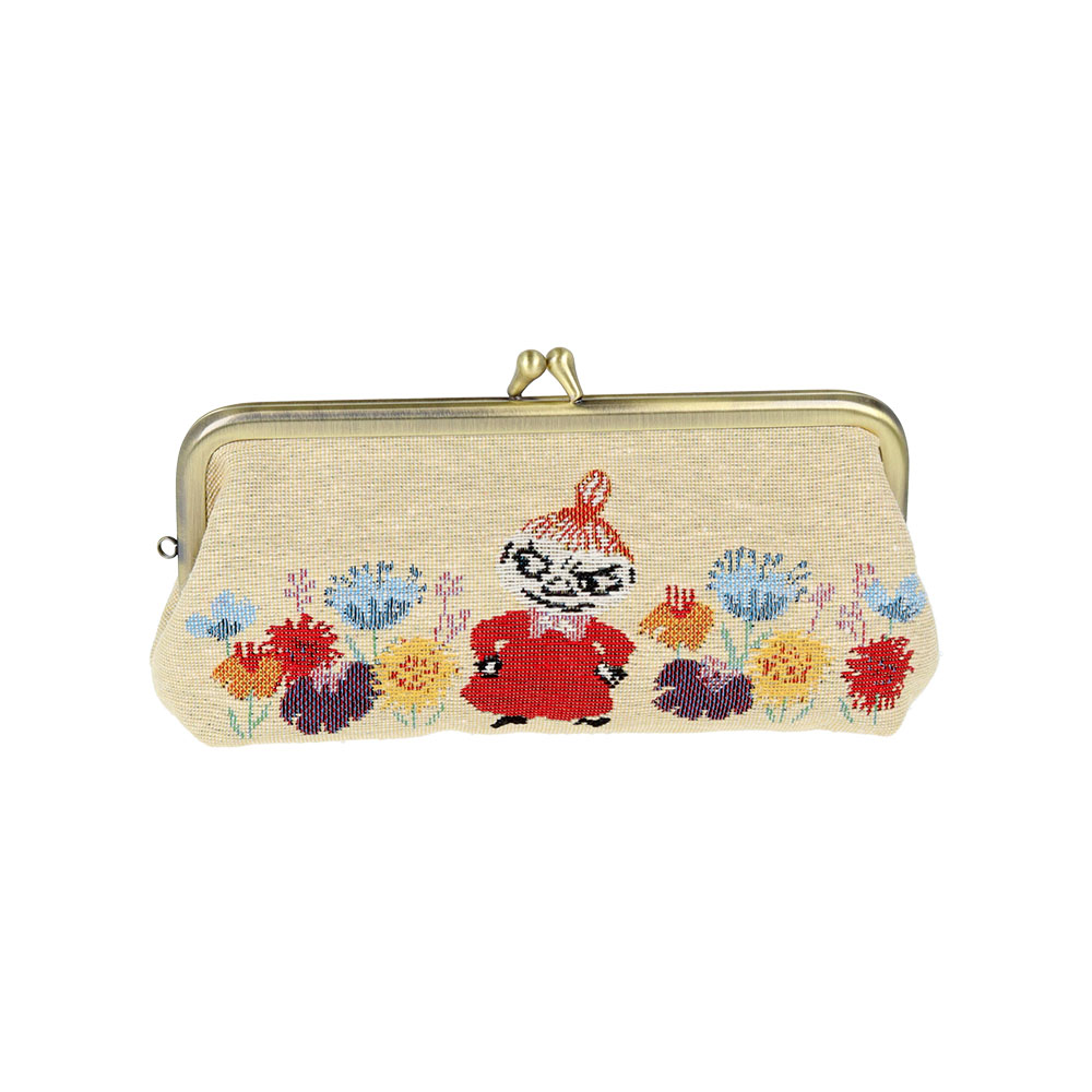 両手を腰に当てながら花々を見つめる「リトルミイ」をデザインしたメガネケース。