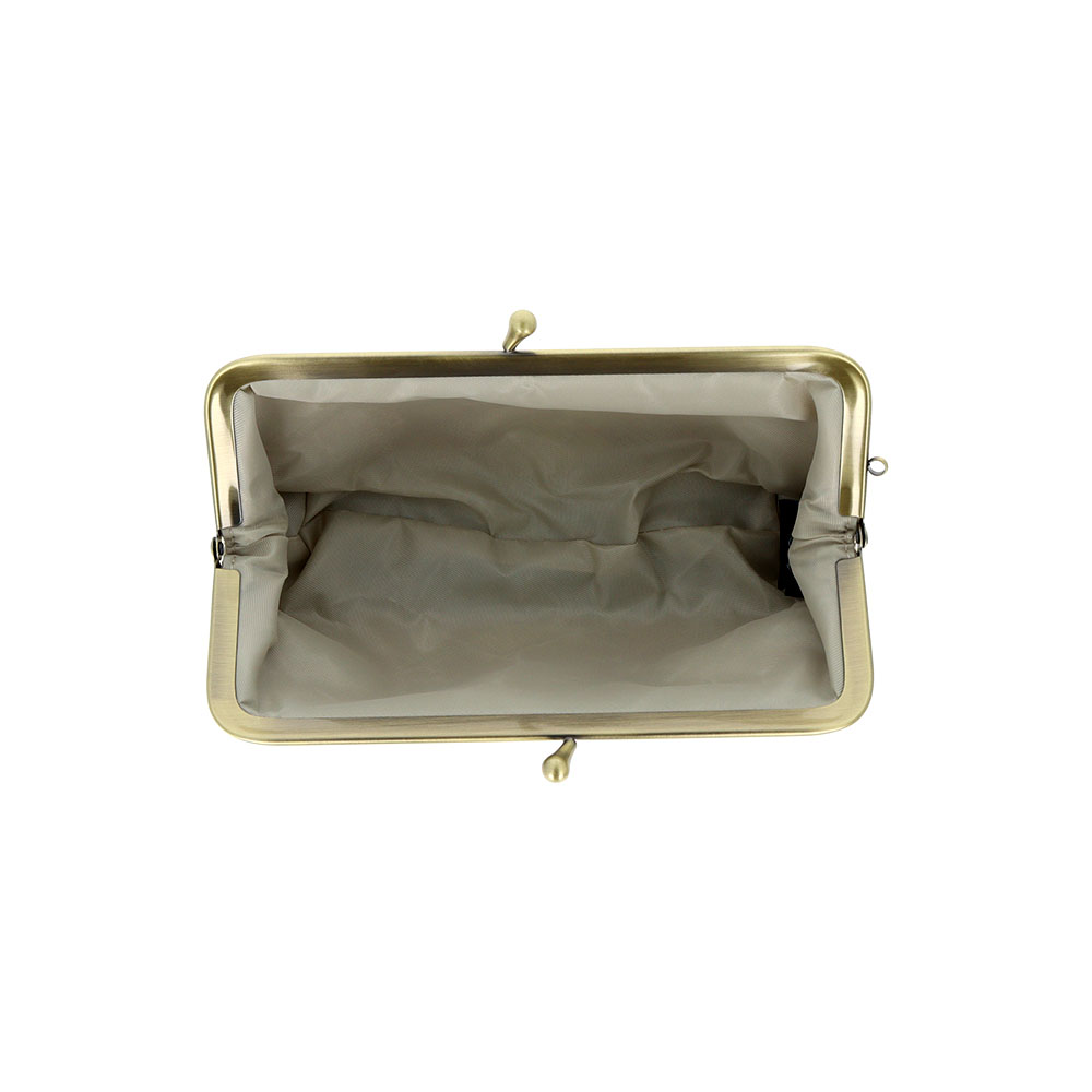 横幅が広いので中身が取り出しやすい、便利ながま口タイプのポーチ。