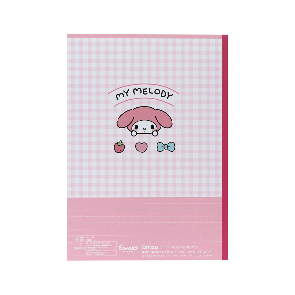 キャンパスノートドットA罫5冊パック(マイメロディ)裏