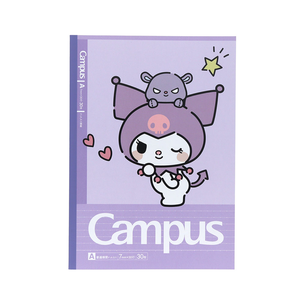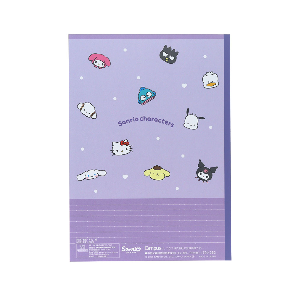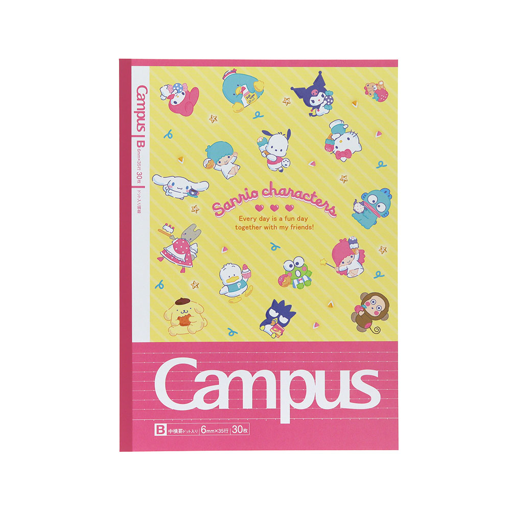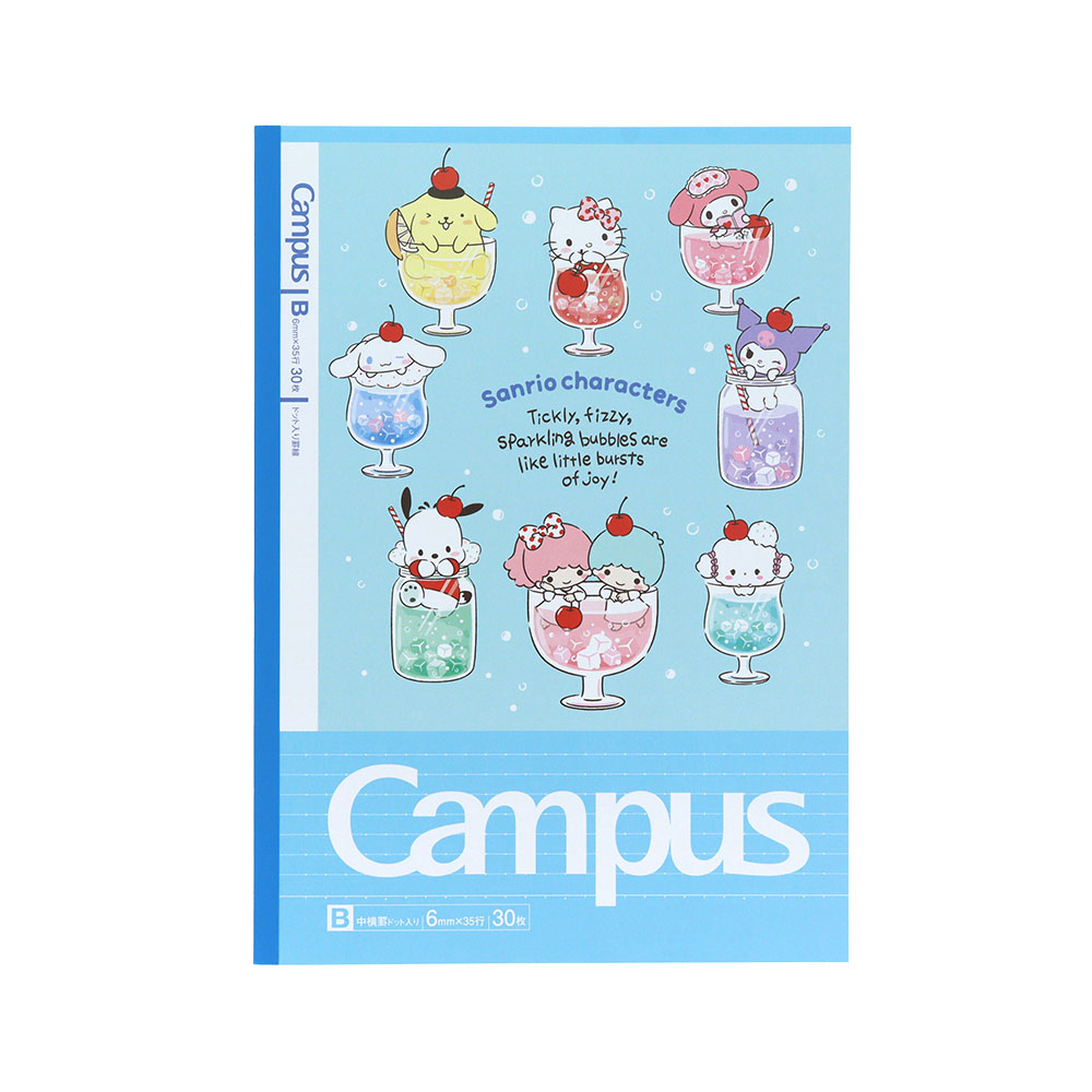 ドットの入った罫線が便利なキャンパスノートドットの5冊パックに、「サンリオキャラクターズ」があしらわれたデザインが登場。