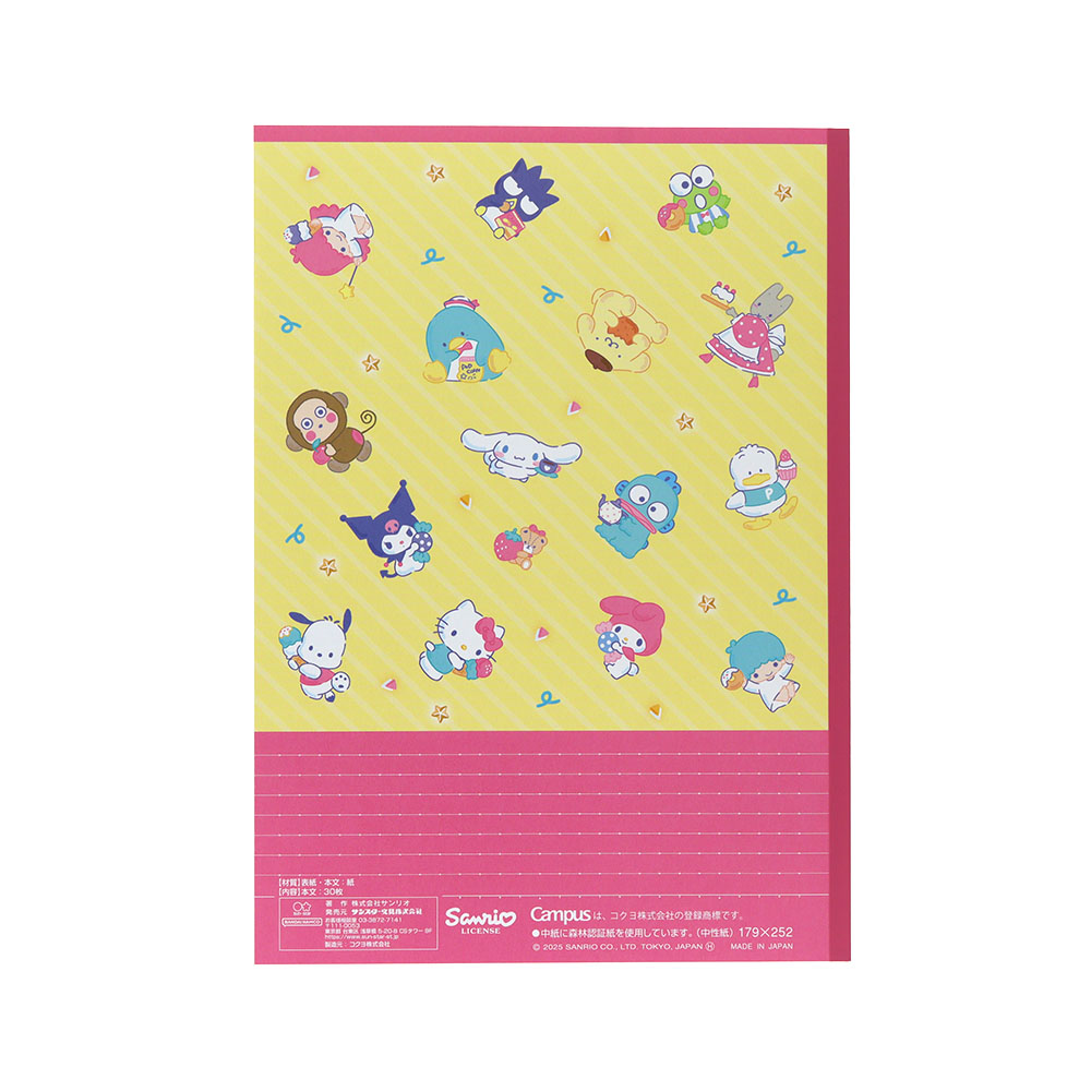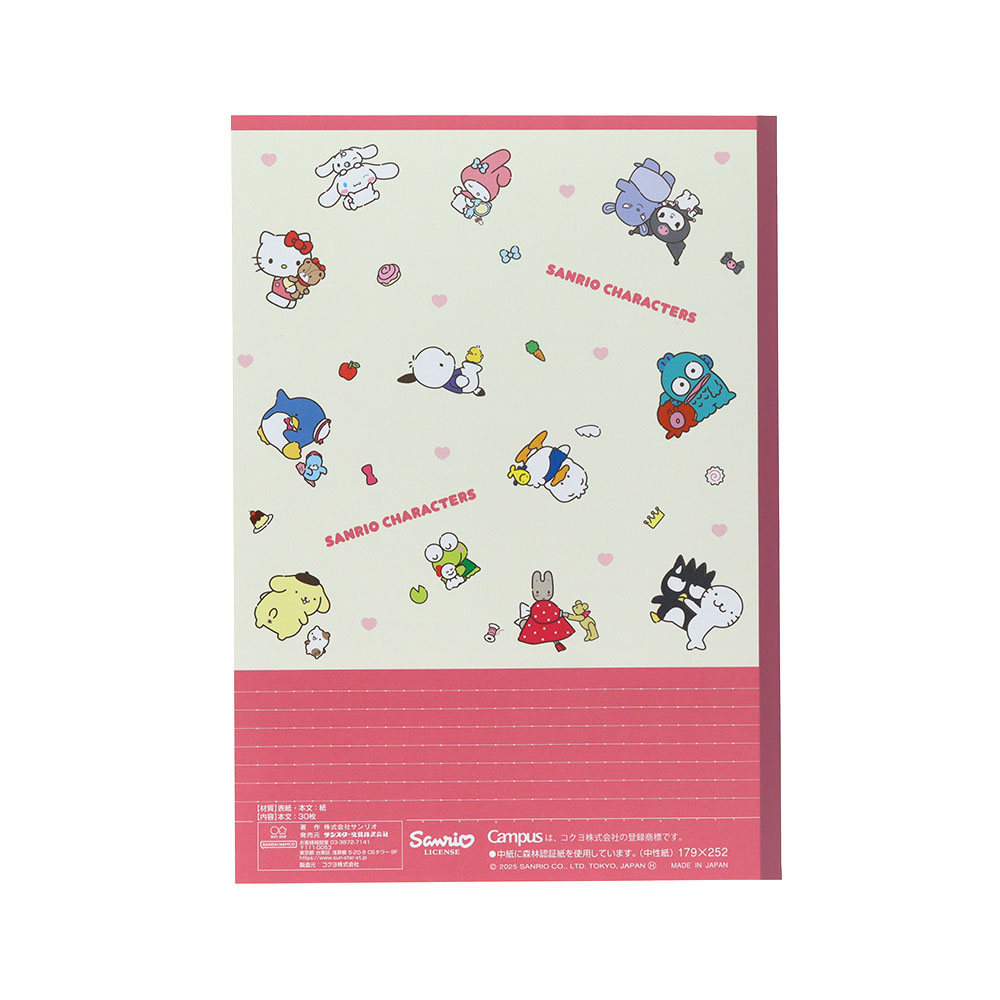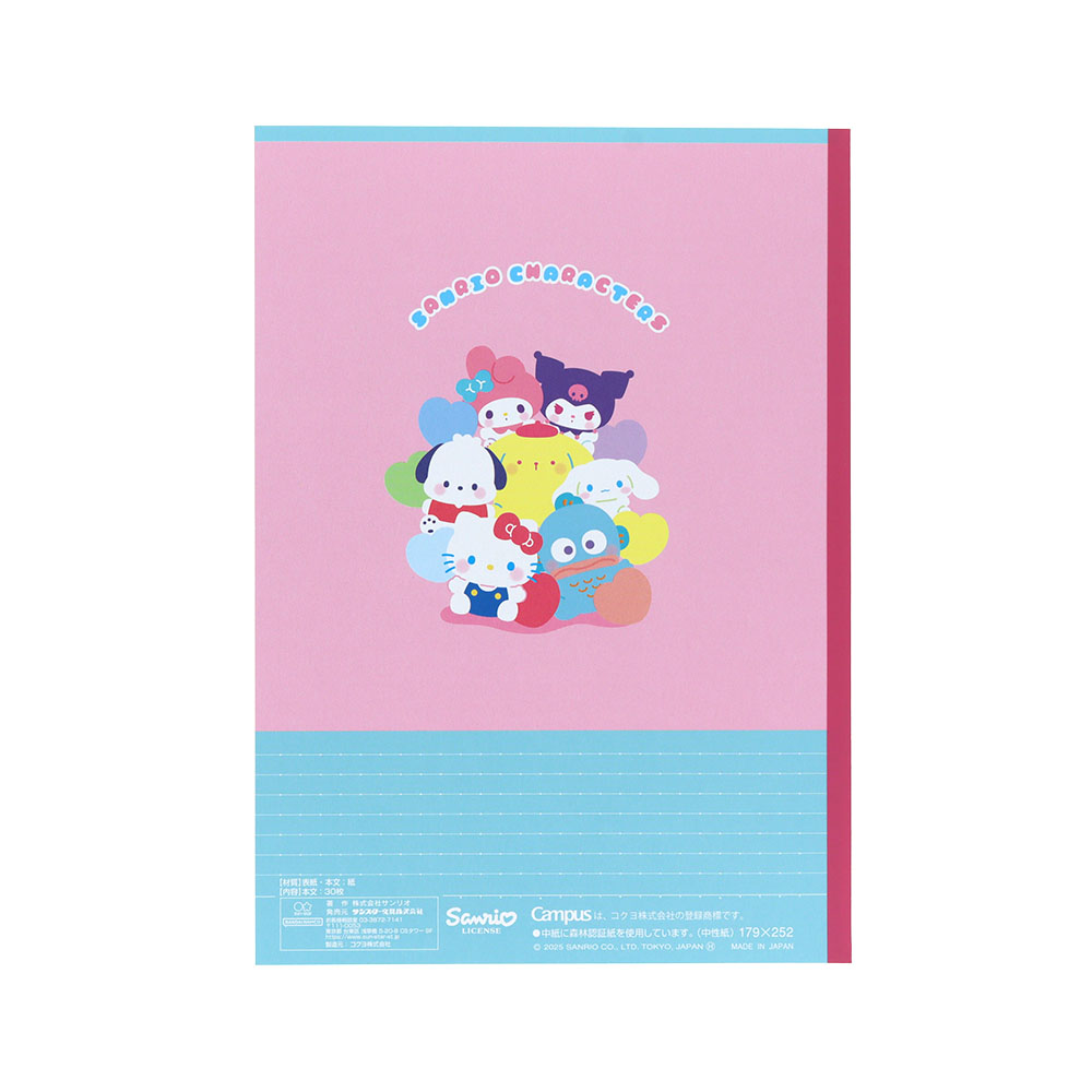 細かく書き込める、6ミリのB罫ノート5冊セットに「サンリオキャラクターズ」デザインが登場。