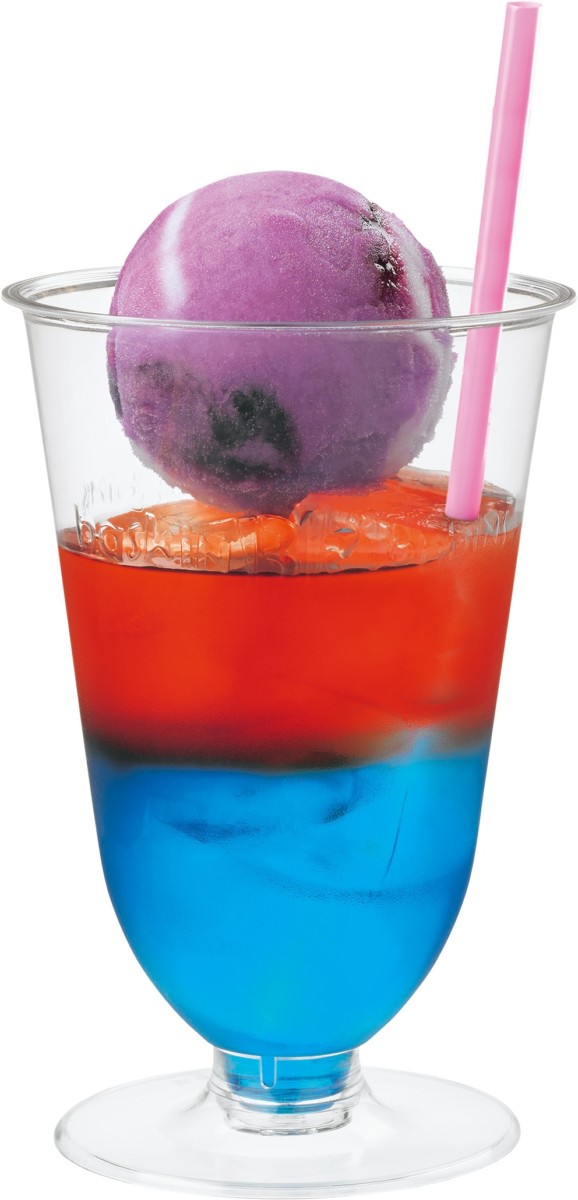 青色とオレンジ色の2層のシロップがぐるぐるっと混ざると…