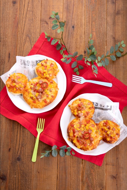 ミッキーマウスのアイコン型にこねたピザパン生地に、ウィンナー・コーン・プチトマト・チーズをたっぷりのせて焼き上げるお子様対象の『kids1dayレッスン』