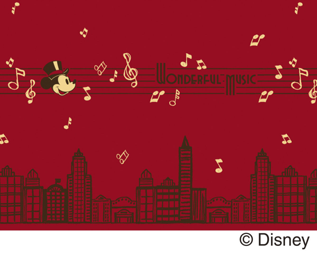 内装生地にはミッキーマウスと五線譜、そして1920年代頃のニューヨークのビル群をイメージしたオリジナルグラフィックが描かれています。