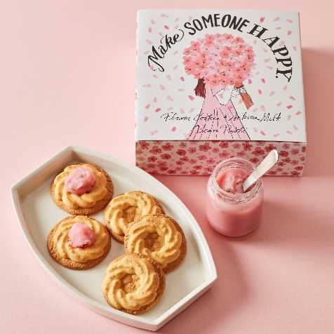 お花型のクッキーの上にさくらミルクあんをのせて楽しむ、かわいいギフトセット。