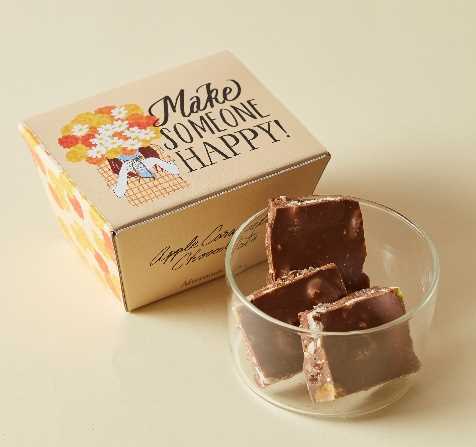 甘酸っぱいドライベリー入りの苺味チョコレートにマシュマロをトッピングしたピンクがキレイなチョコレート。