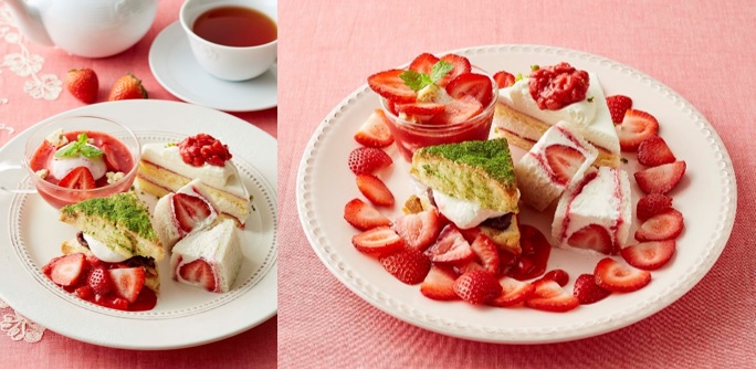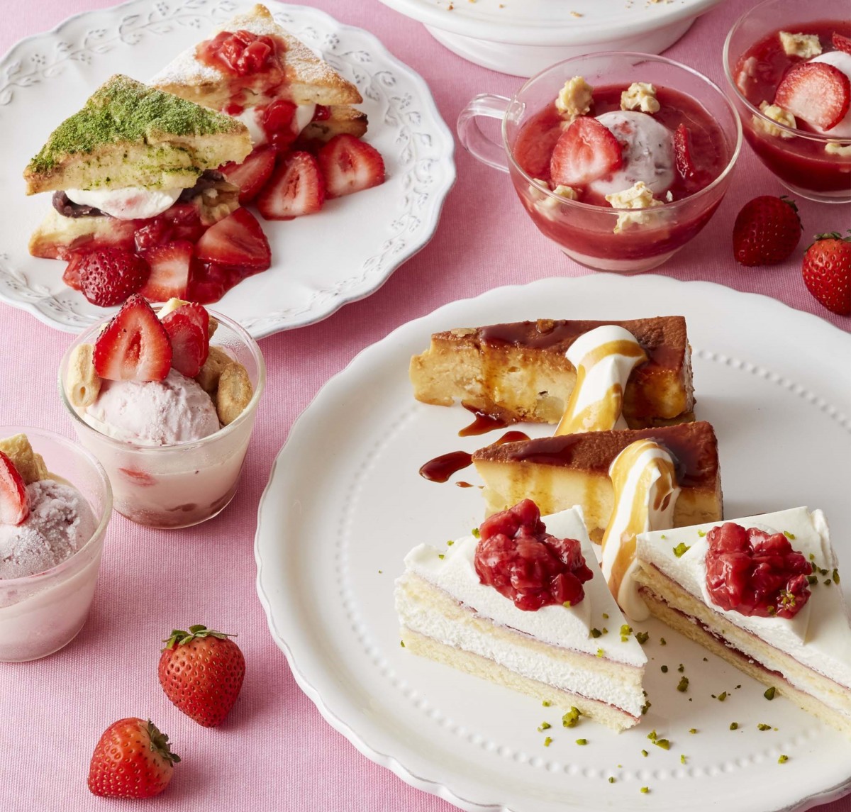 第1弾として「苺とあずきのスコーンショートケーキ」「苺のスープパンナコッタ」などのいちごスイーツがラインナップされています。