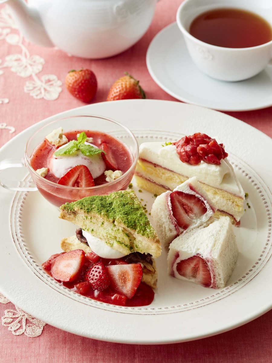 アフタヌーンティー・ティールームでは、「STRAWBERRY FUN DAYS!」として、いちごスイーツ3種+選べるスイーツ1種を好きなお茶と楽しめる「苺のアフタヌーンティーセット」が登場!