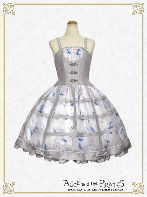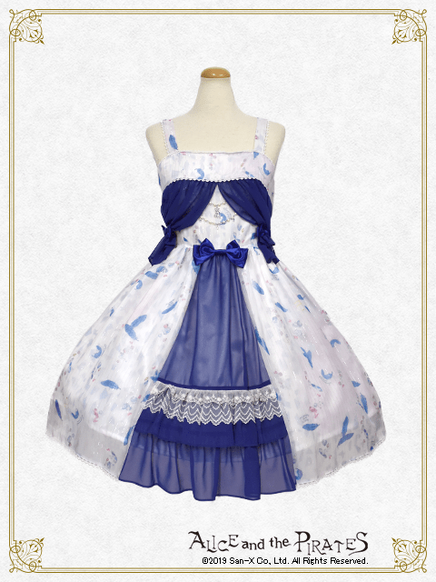 青い鳥と記憶のカケラ柄囚われの鳥籠ジャンパースカート