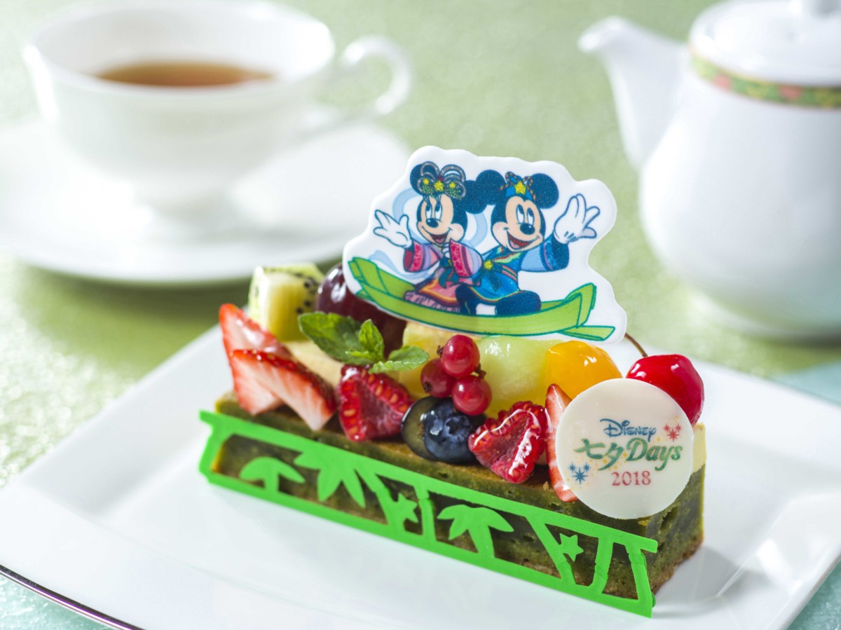 「ディズニー七夕デイズ」の限定メニューは、フルーツがたっぷのケーキセット。
