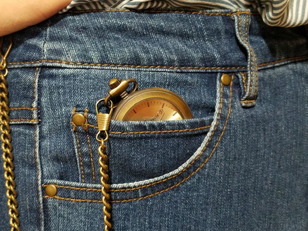 ジーパンのウォッチポケットに入れて、懐中時計を持ち歩くのもおしゃれです。