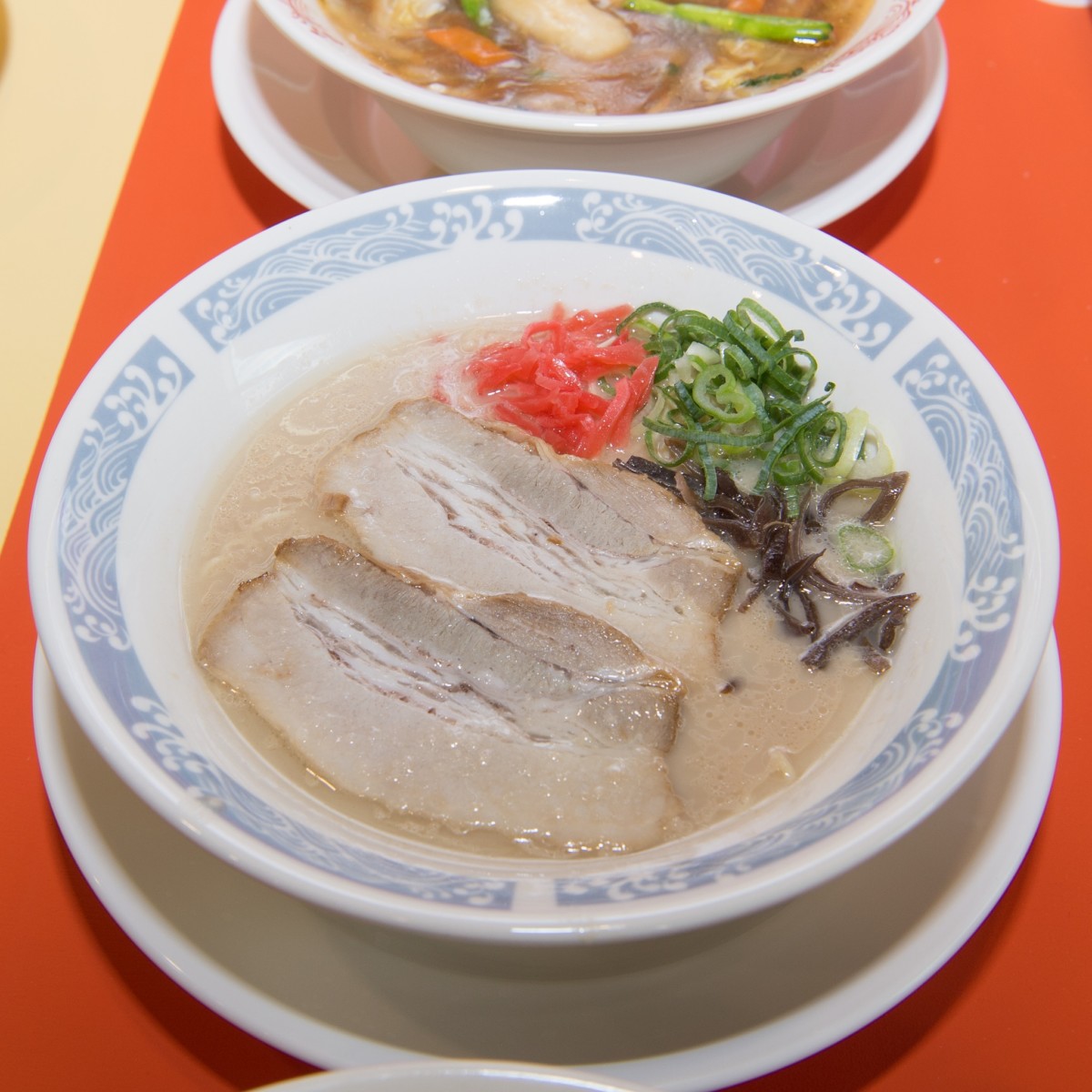 濃厚なとんこつスープにチャーシューが乗ったラーメン。