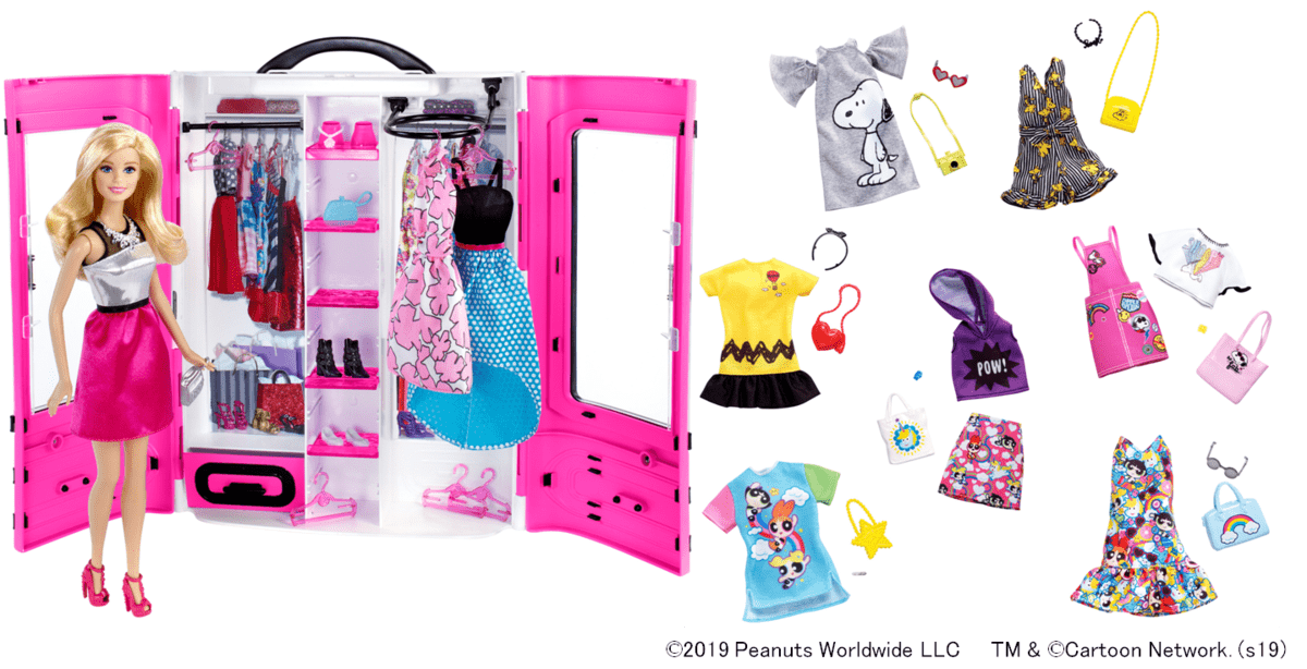 2019年にデビュー60周年を迎えた「バービー」から、「PEANUTS」や「パワーパフ ガールズ」といった大人気キャラクターとコラボレーションしたファッションアイテムと、洋服やアクセサリー、可愛いドールがセットになった人気のクローゼット新商品が登場!