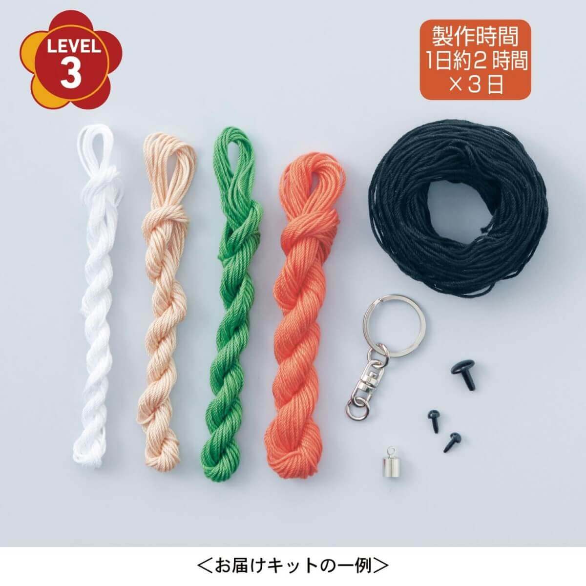 セット内容:材料セット(レース糸、目玉パーツ、フエルト、金属パーツなど)、作り方説明書