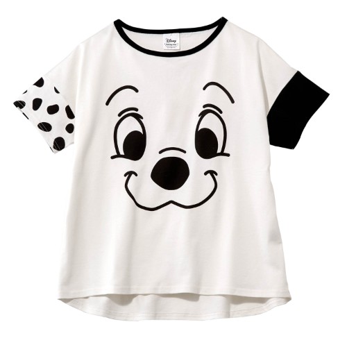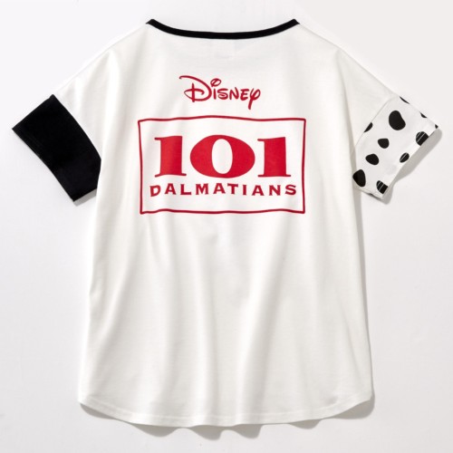袖にダルメシアン柄を施した『101匹わんちゃん』デザインのTシャツ。
