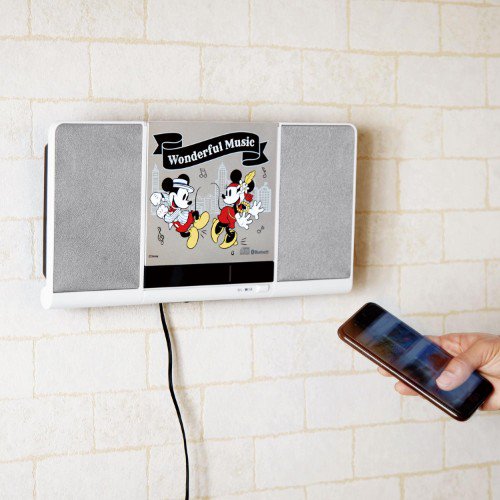 すっきりとした薄型で、壁に掛ければ場所をとらずにスマートに飾ることができる「ミッキー&ミニー」デザインのCDプレイヤー。