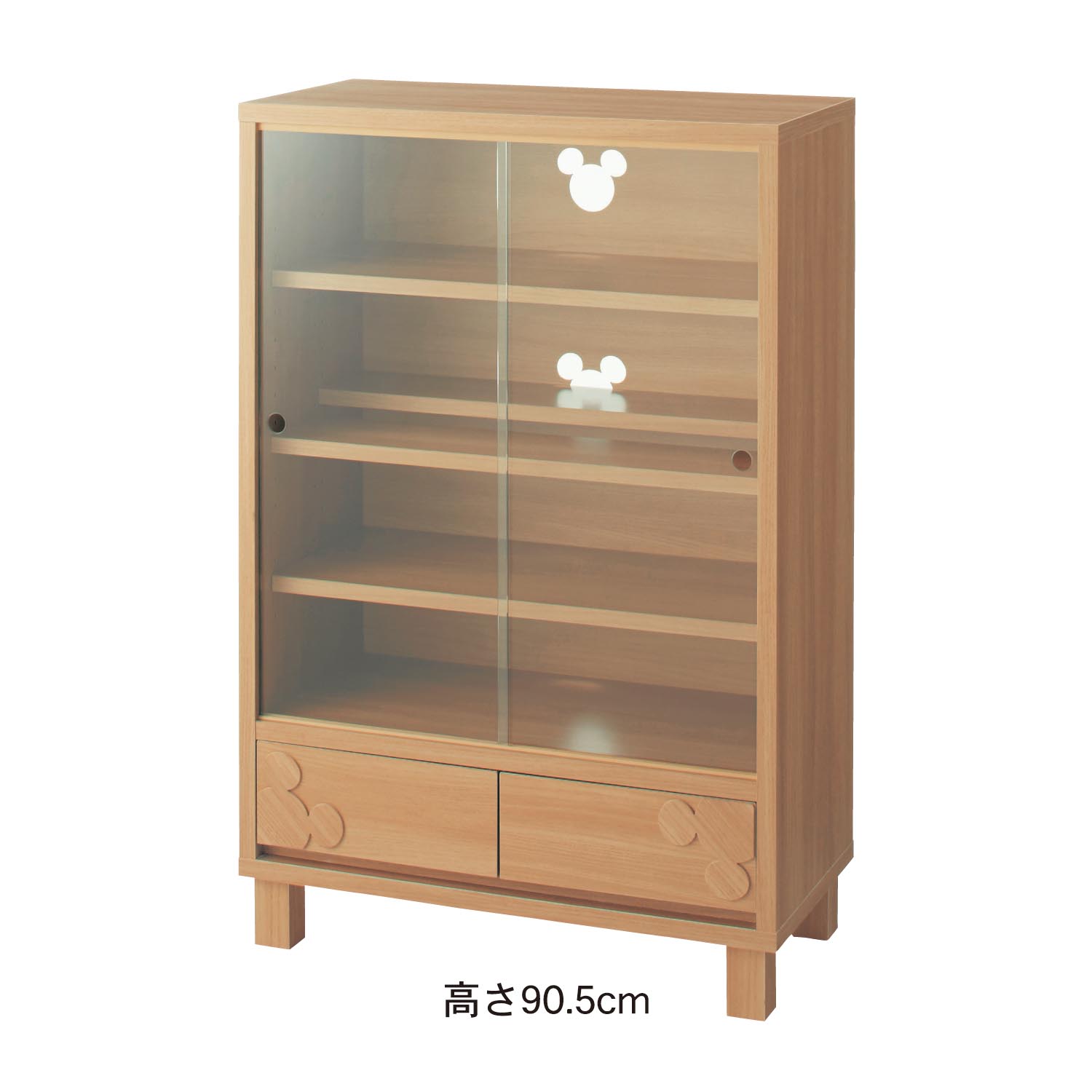 ダブル棚板のコレクションキャビネット ミッキーモチーフ 穴
