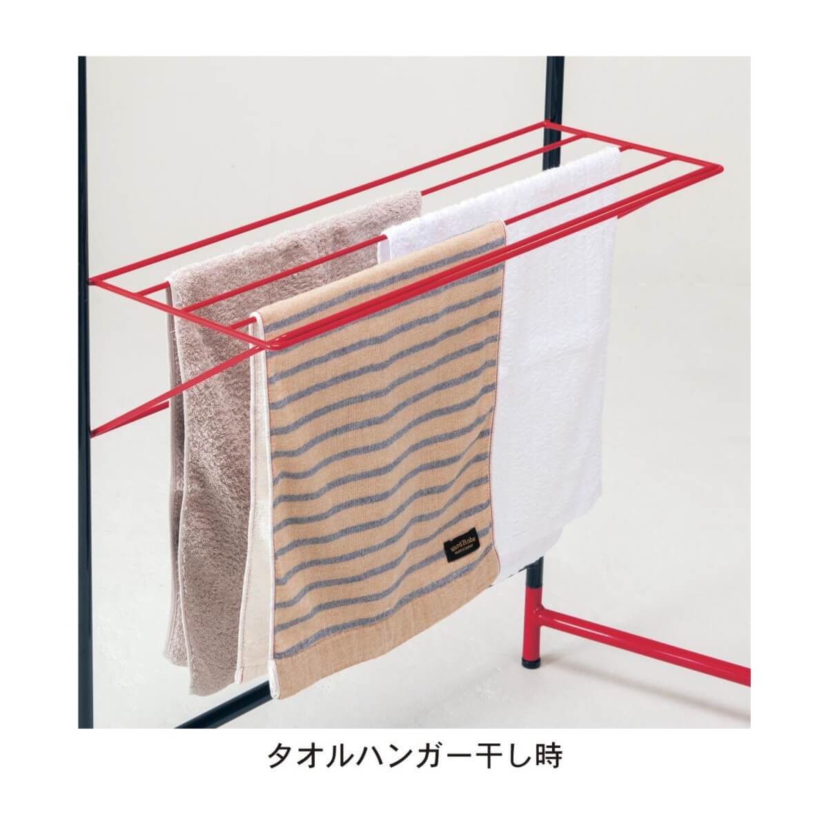 タオルハンガーも付いているので、タオルやハンカチなどもしっかりと干せます。