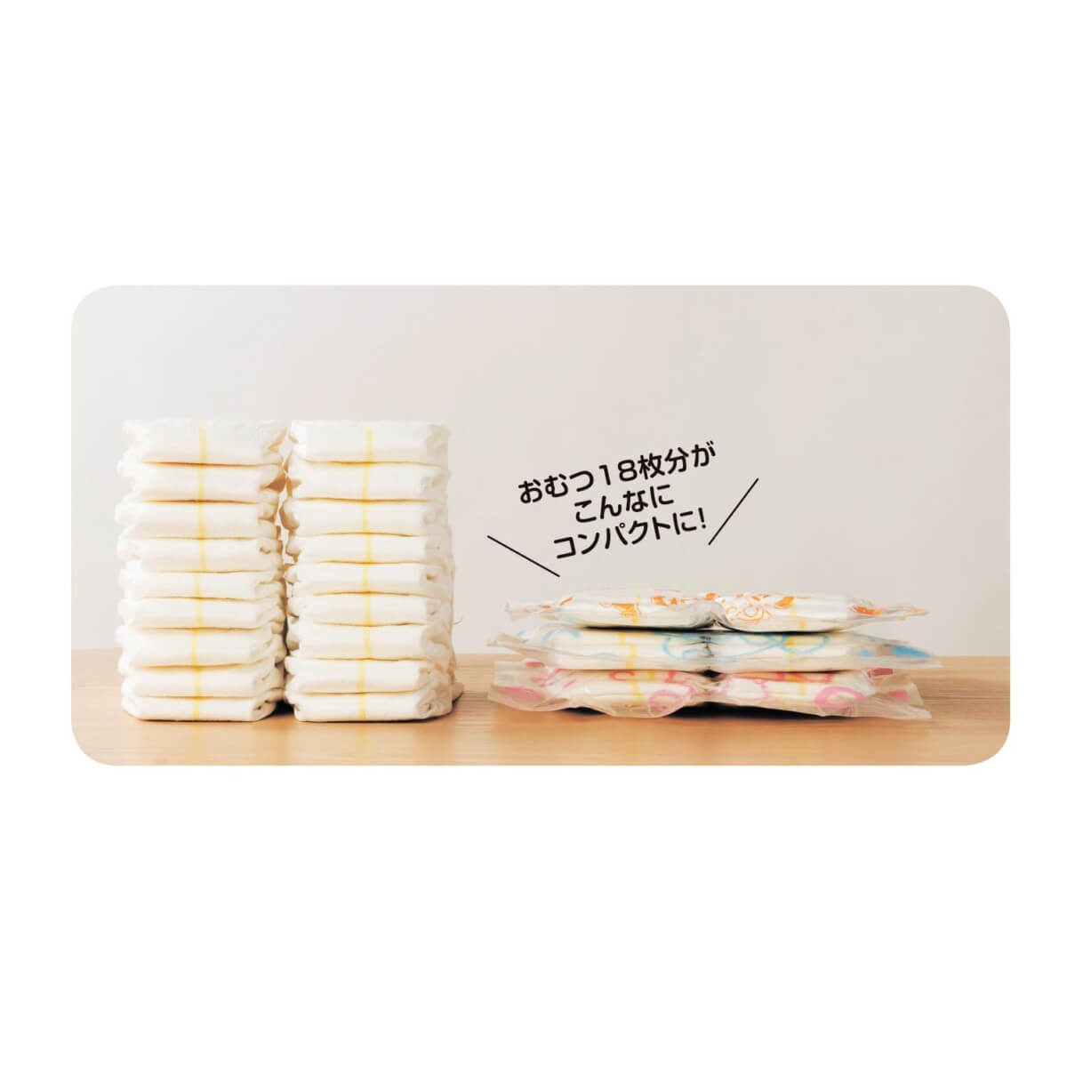 かさばる紙おむつをコンパクトに持ち歩くことができるおむつ専用の圧縮袋☆