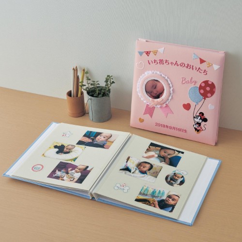 誕生日の出来事を書き込めるシートや、手形・足形を残せるシートがついているので、写真と一緒に大切な思い出や記録を残せます☆