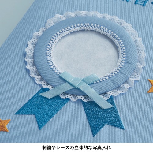 表紙の写真入れはリボンやレースなどをあしらい、立体的になっています。