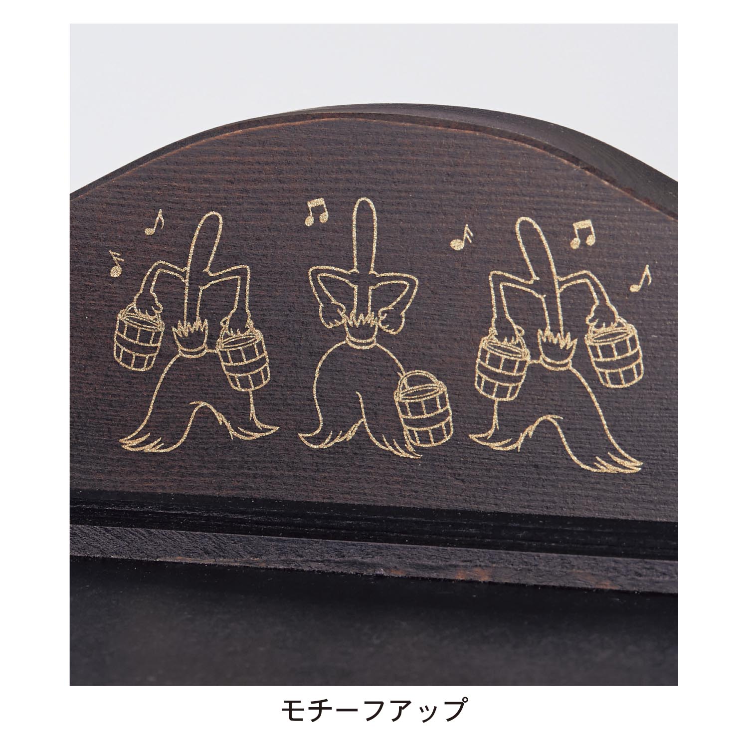 扉の縁取りには音符やミッキーモチーフを、上部の飾り部分には「ほうき」のデザインがキラリと輝くゴールドでデザインされています。