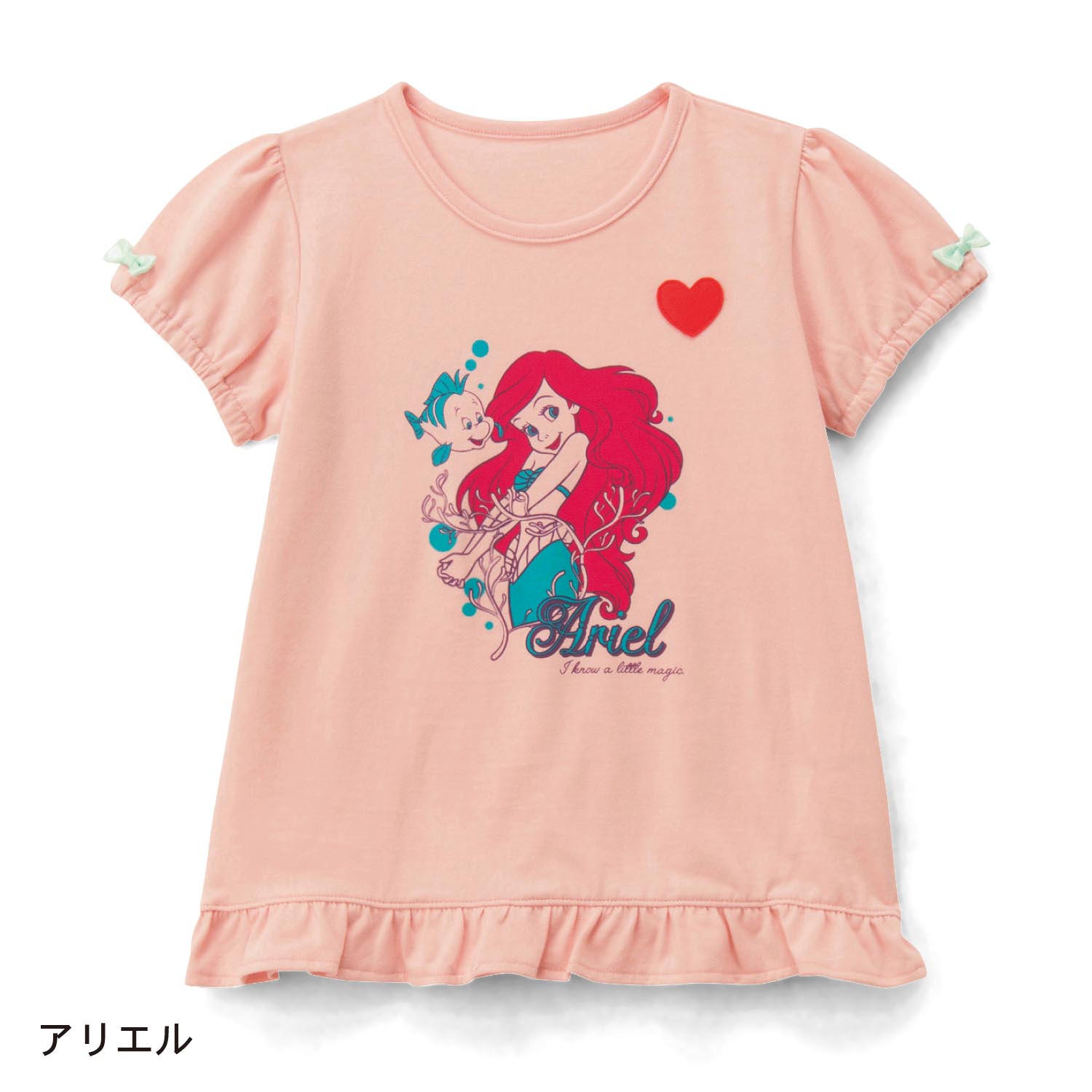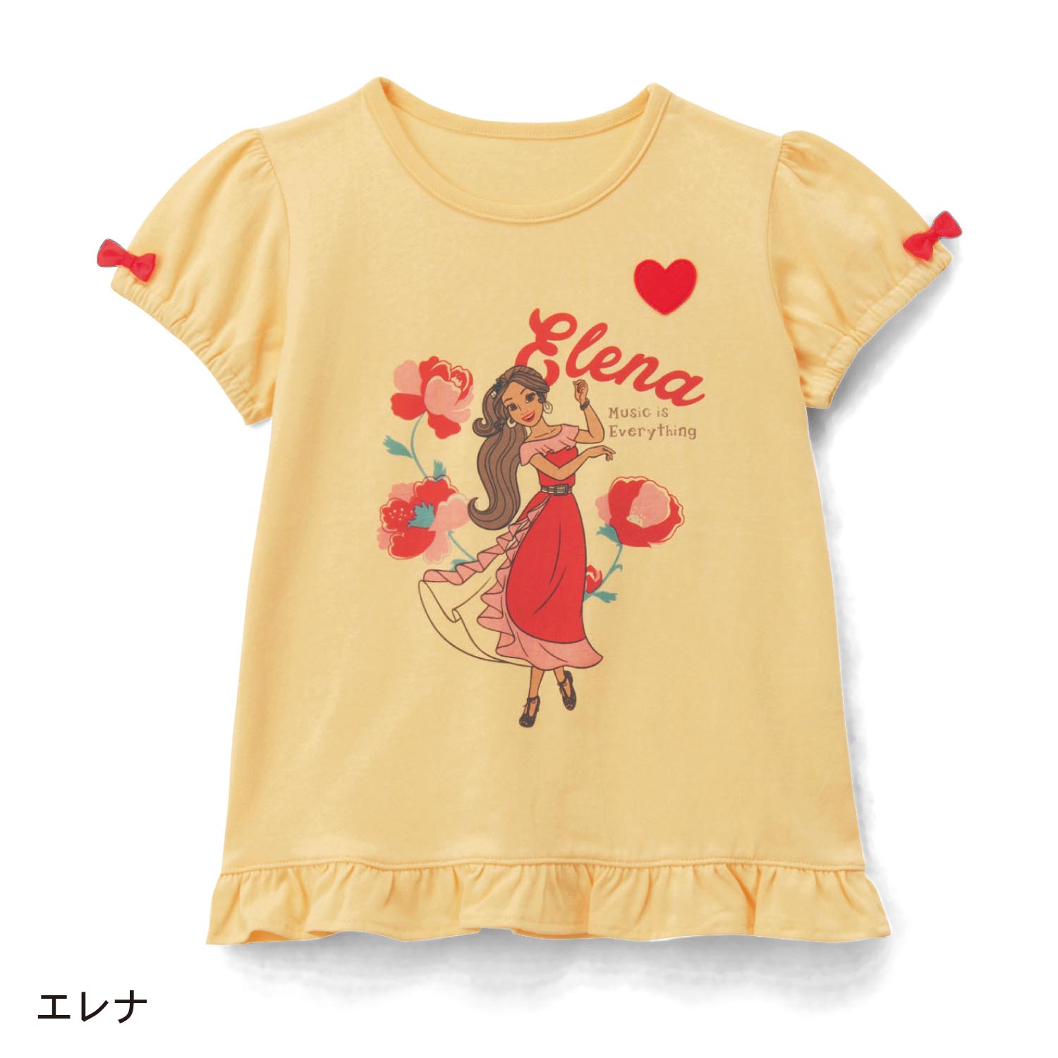 ミニー・アリエル・エレナ・アナ&エルサの4種類!ベルメゾン ディズニーデザイン「名札付けワッペン付き裾フリルパフ袖Tシャツ」