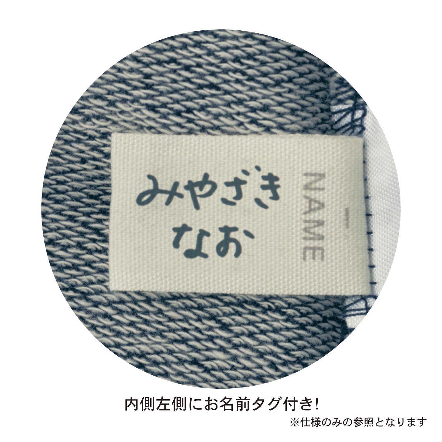 左胸にはハート型の名札付けワッペン付きで、80・90サイズは左肩スナップボタン留めでお着替えも楽チン!