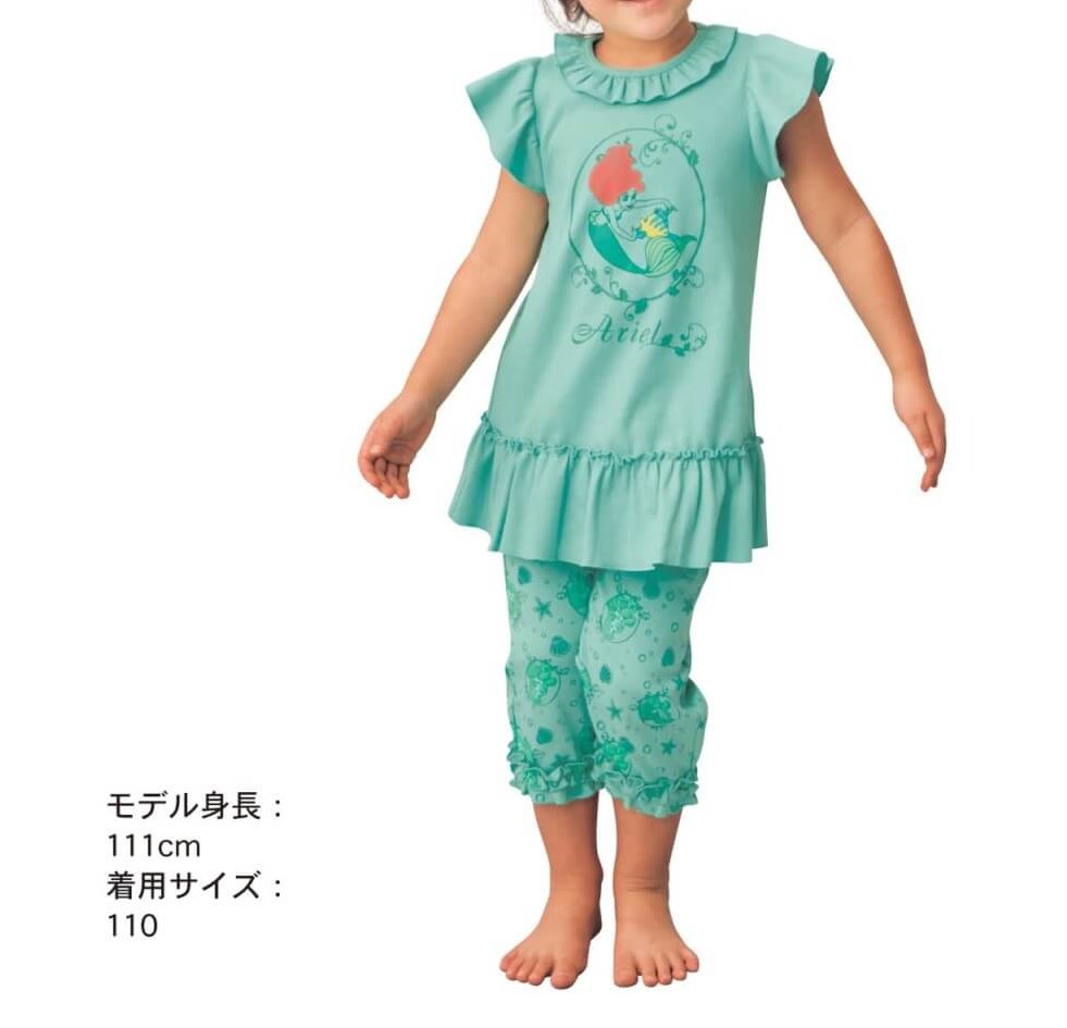 「アリエル」の住む海をイメージした鮮やかなグリーンに、トップスにはお友達の「フランダー」の姿も♪