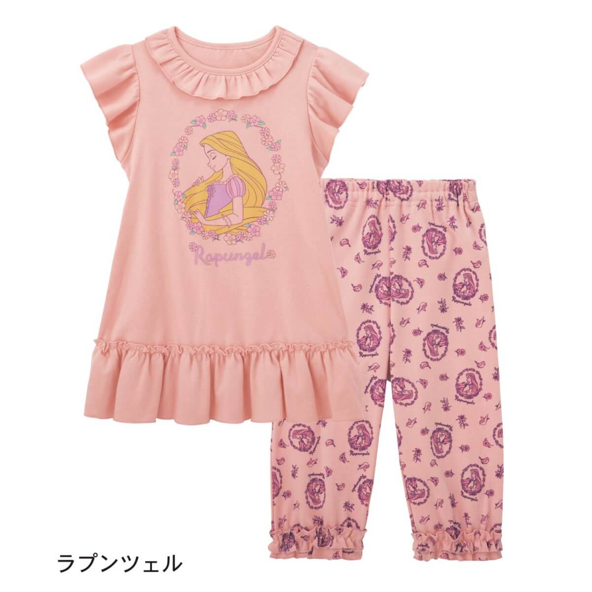 女の子らしいピンクに、トップスにもパンツにも大人っぽい表情の「ラプンツェル」の姿をプリントしています。