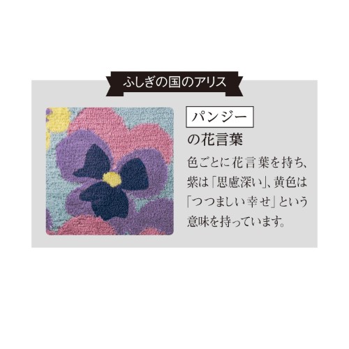 「アリス」の足元にレイアウトされた、パンジーと蝶々のアートが魅力的です。