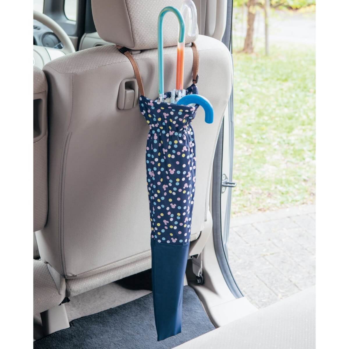 車の中でも傘をスッキリ収納!ベルメゾン ディズニーデザイン「ヘッドレストにも肩にも掛けられる傘ホルダー」