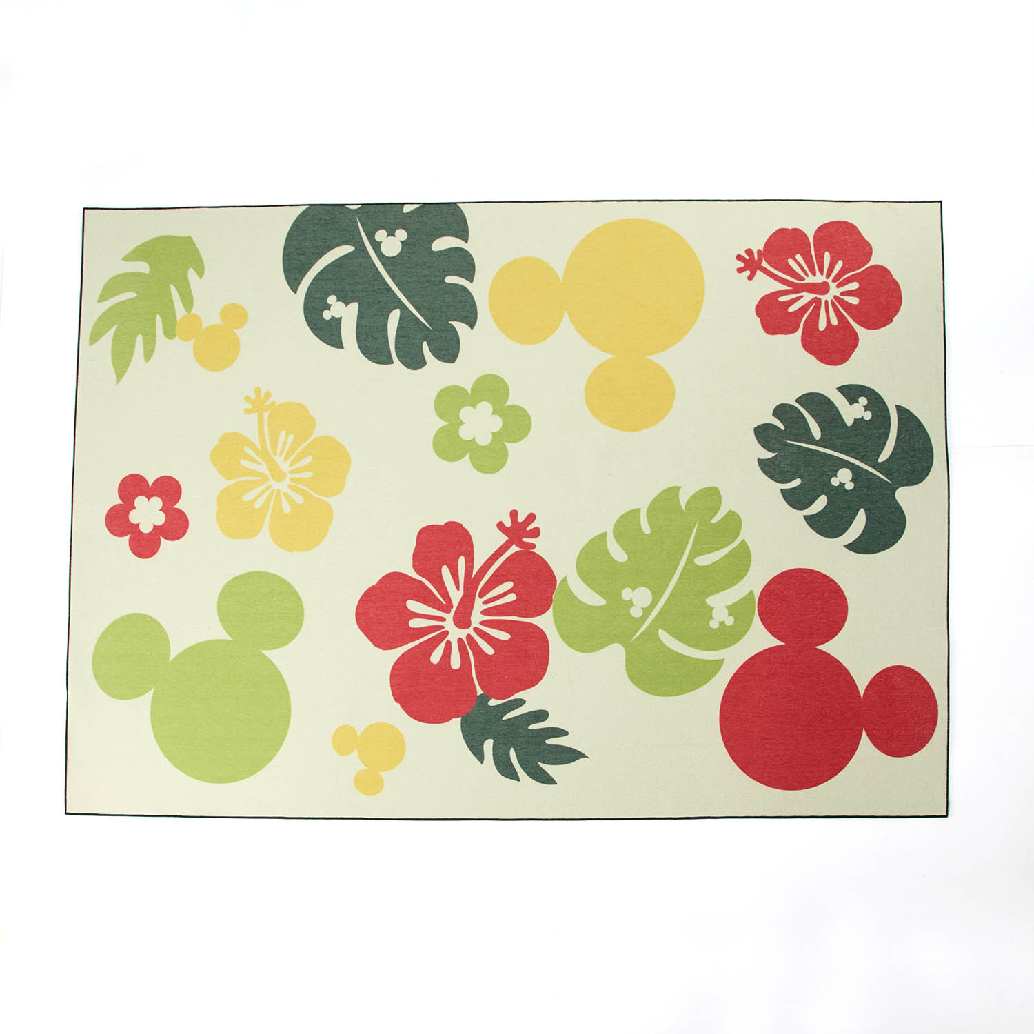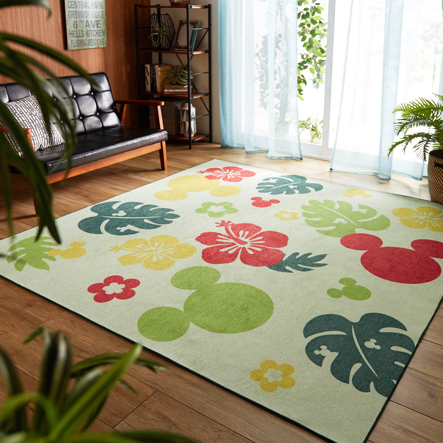 リゾート感のあるトロピカル柄とミッキーモチーフが愛らしい佇まいのラグです。