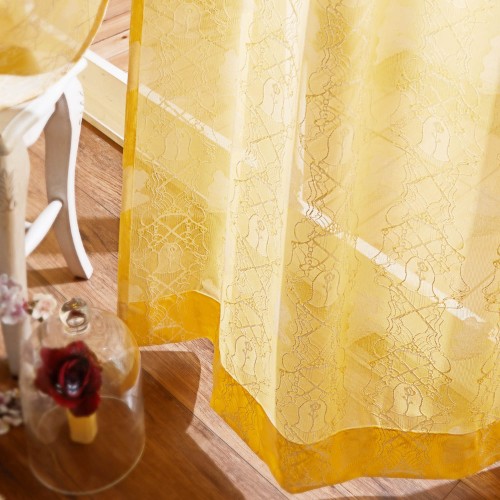 ディズニーアニメーション映画『美女と野獣』のディズニープリンセス「ベル」デザインのレースカーテン。