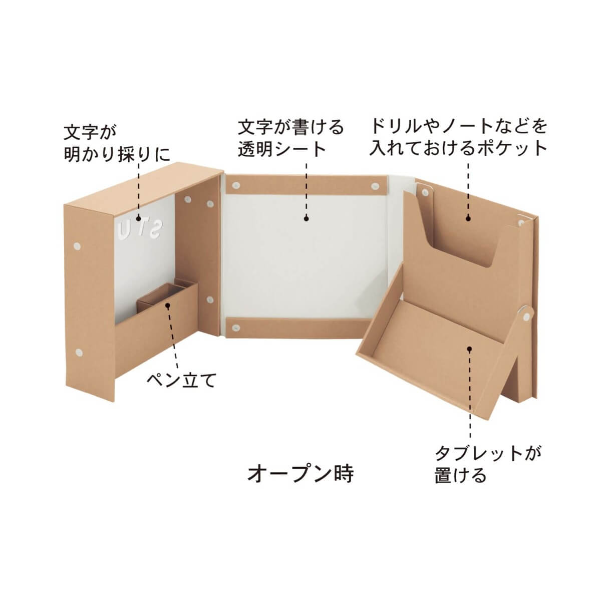 リビングのテーブルに開いて立てるだけで、お子様専用の学習スペースに大変身☆