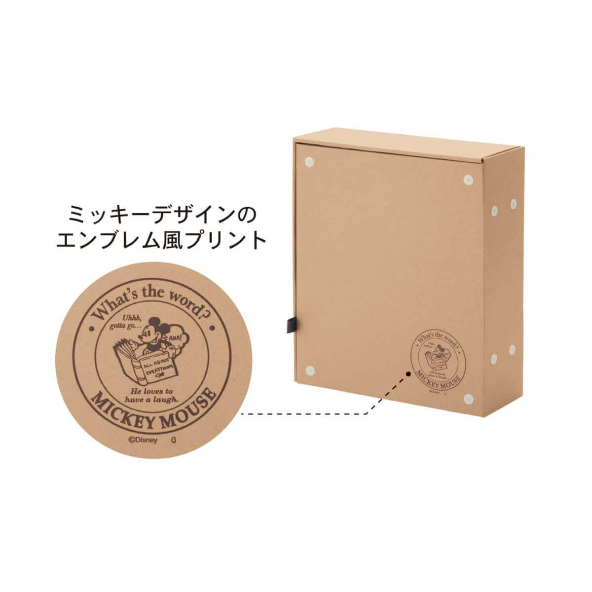 表には「ミッキー」デザインのエンブレム風プリントが!