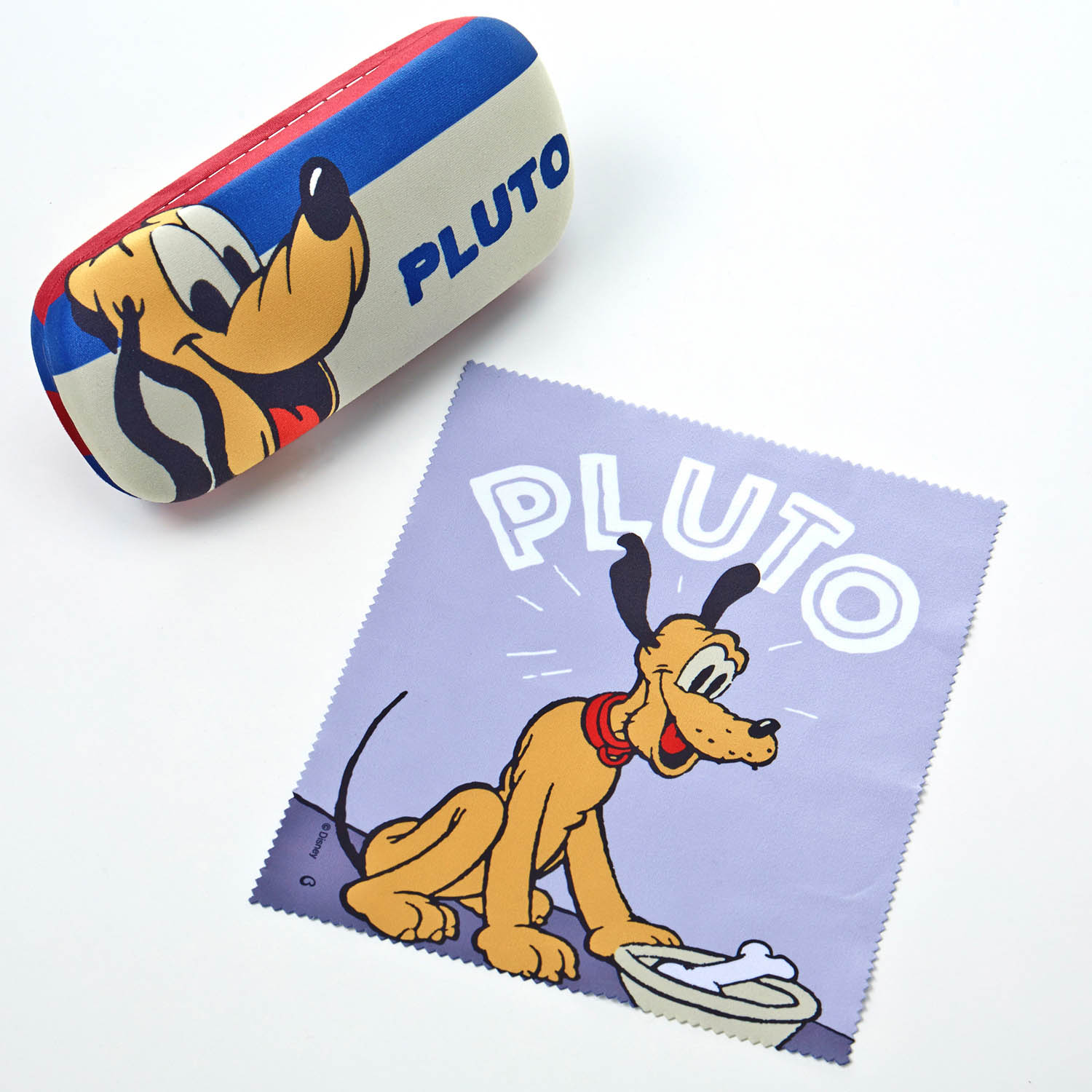 メガネクロスには大好物の骨を見つめて喜んでいる「プルート」の姿が大きくデザインされています。