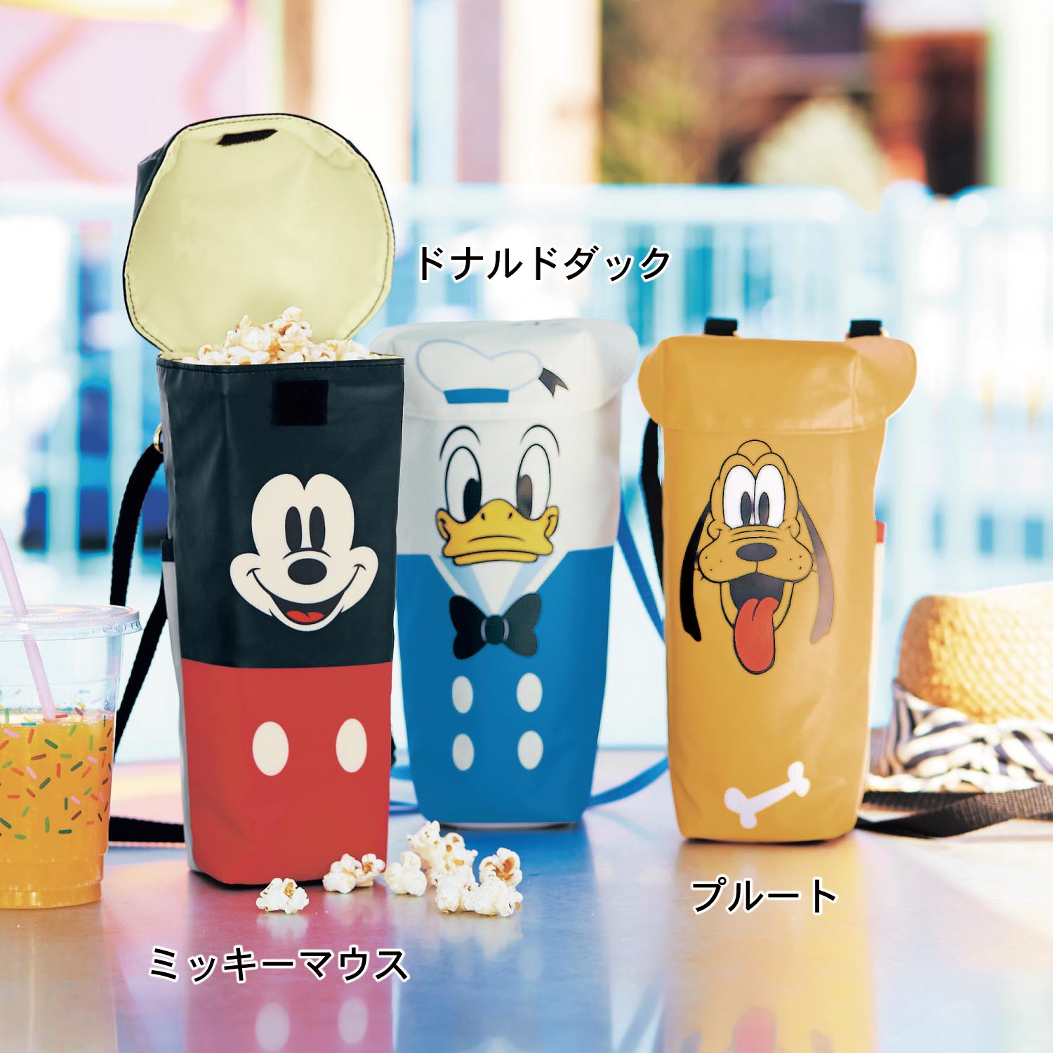 ペットボトルに入った飲み物や紙カップに入ったポップコーンも入れられます。