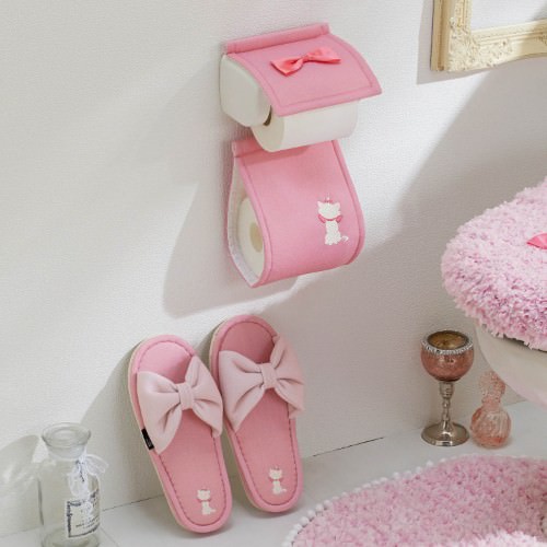 フェミニンなピンクが乙女心をくすぐる、ディズニーデザインの「ふわふわトイレマット・フタカバー」と「トイレットペーパーホルダーカバー&スリッパセット」の紹介でした☆