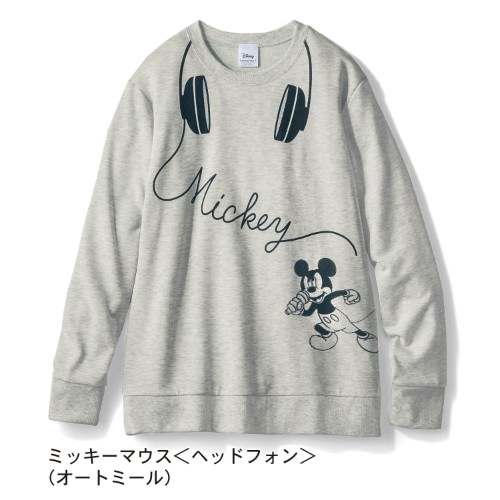 首回りにヘッドフォンのプリントが施された「ミッキー」デザインのプルオーバー。